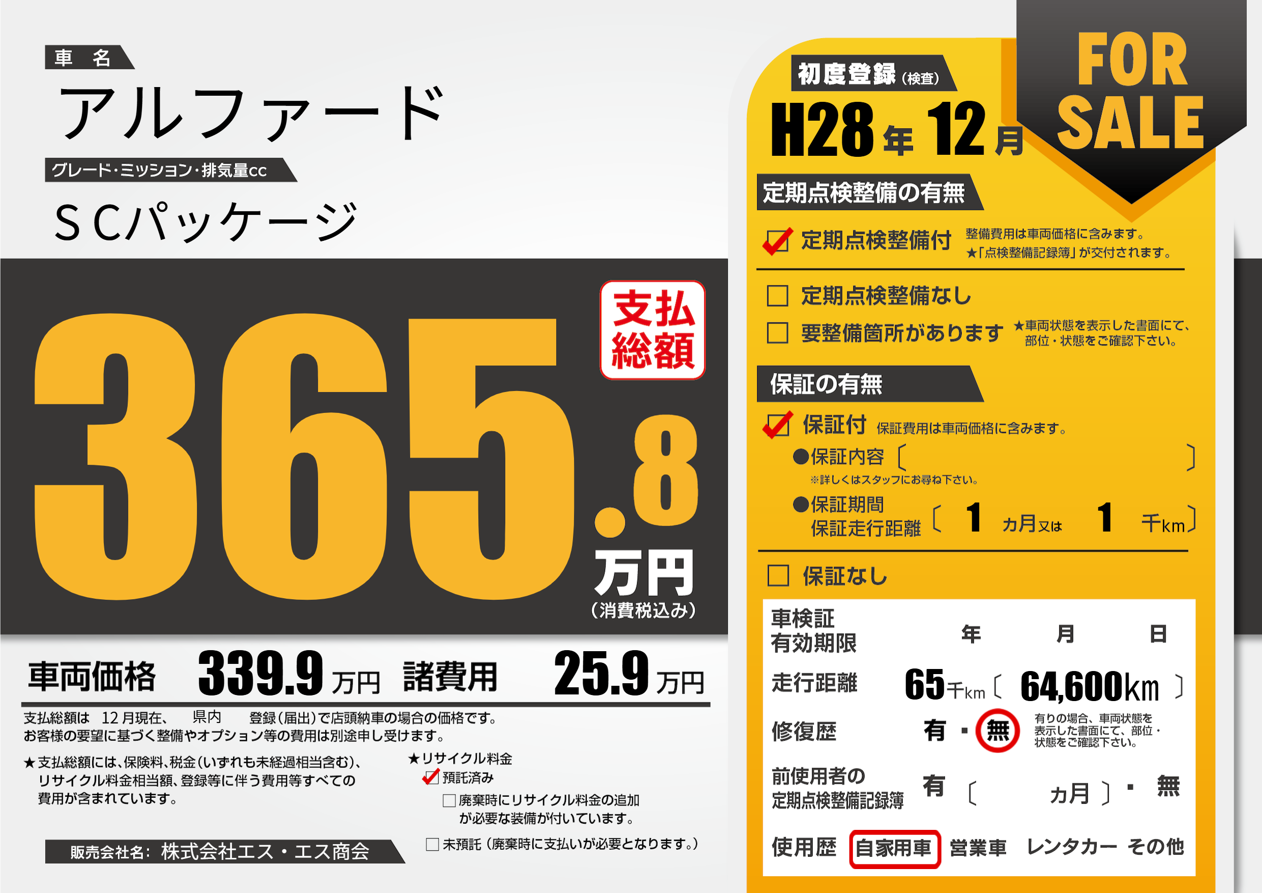 | 走行キロ | 6.5万km | 初年度登録 | H28年12月 |
