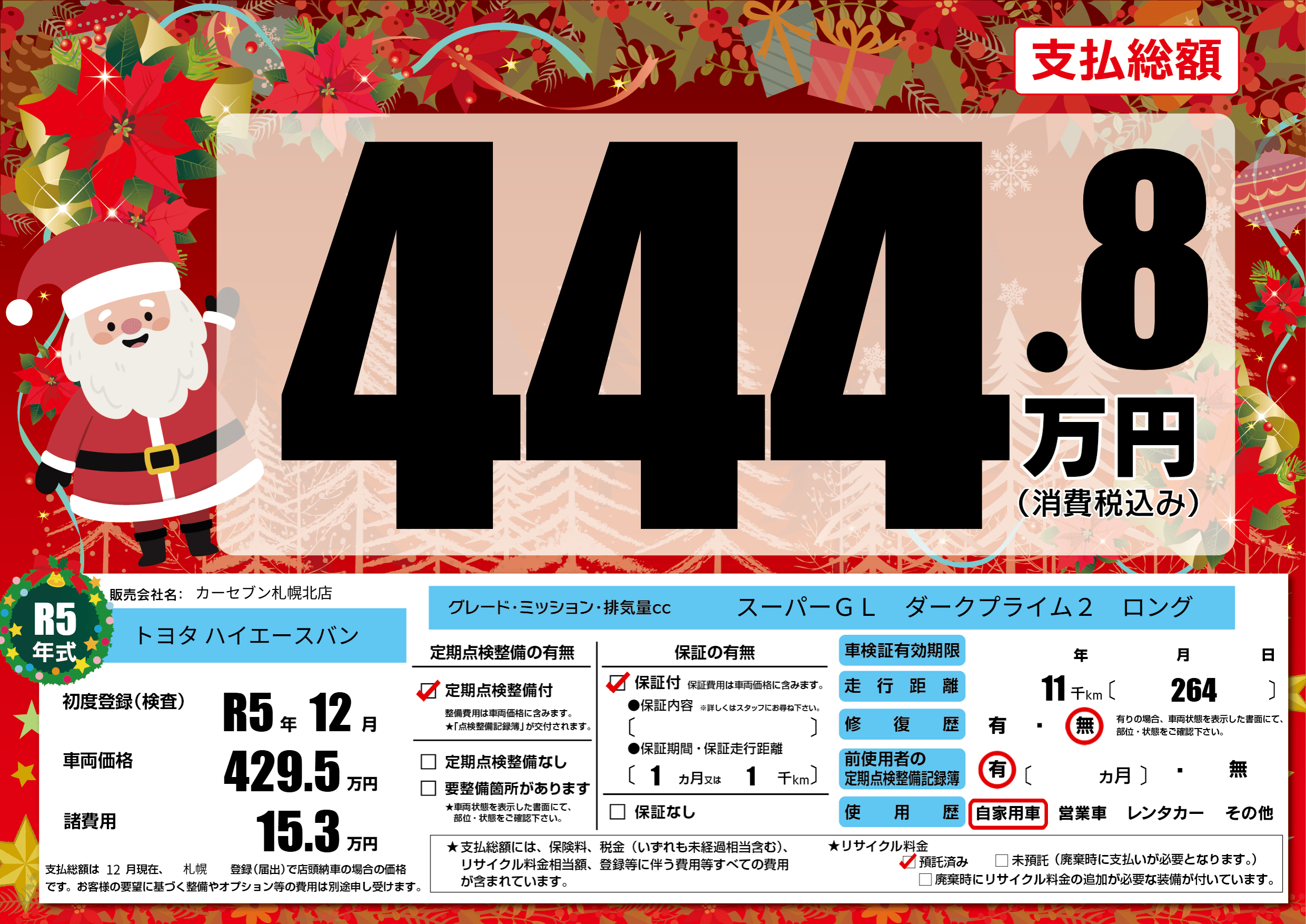 | 走行キロ | 1.1万km | 初年度登録 | R5年12月 |