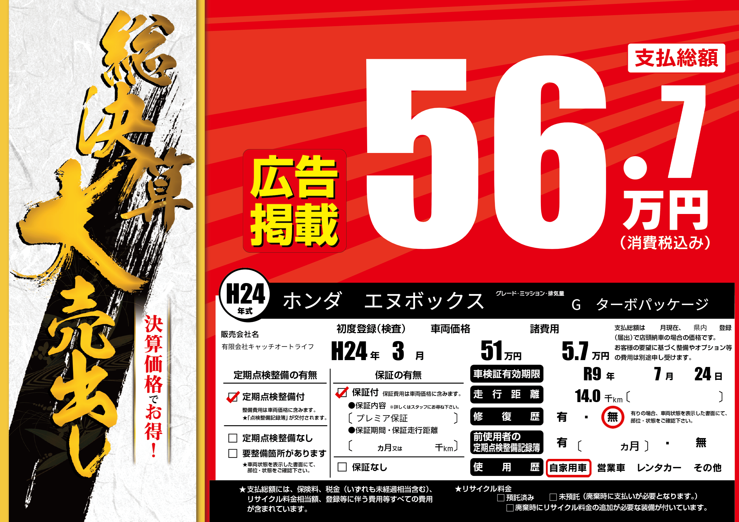 なし | 車検制限 | R9年7月24月 |