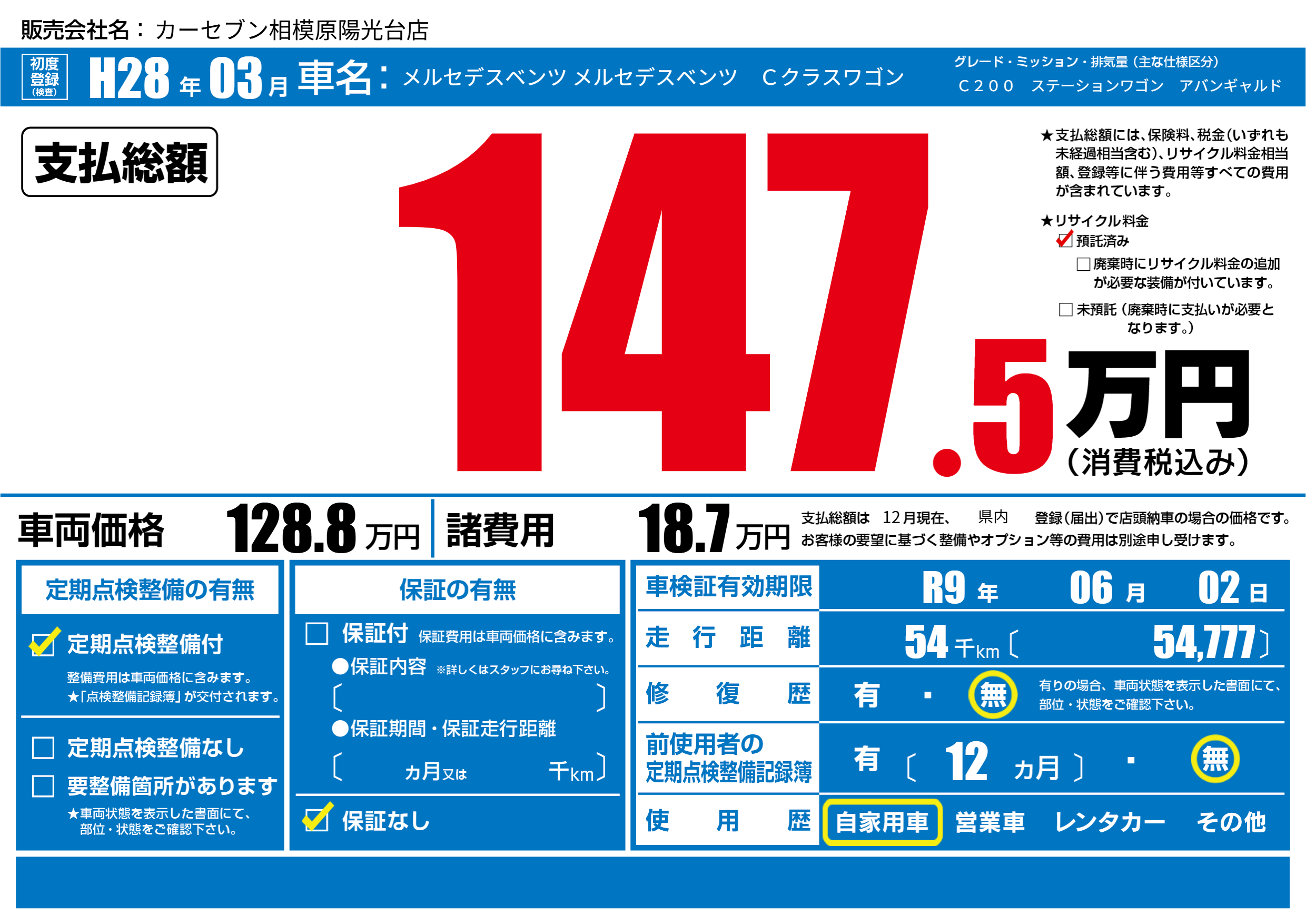 | 車検制限 | R9年 06月 02日 | ||