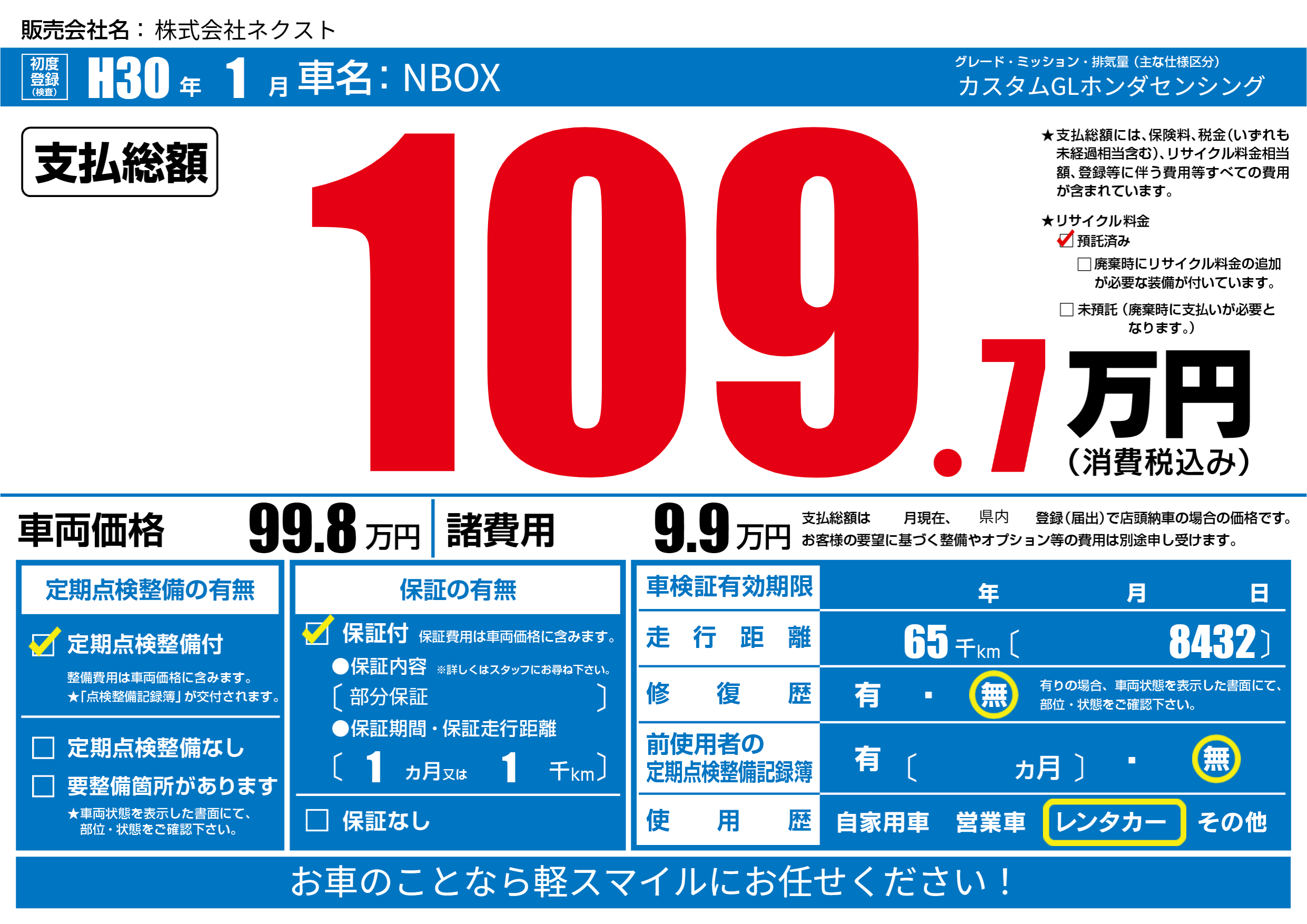 | 定期点検整備 | 定期点検整備あり | ||
