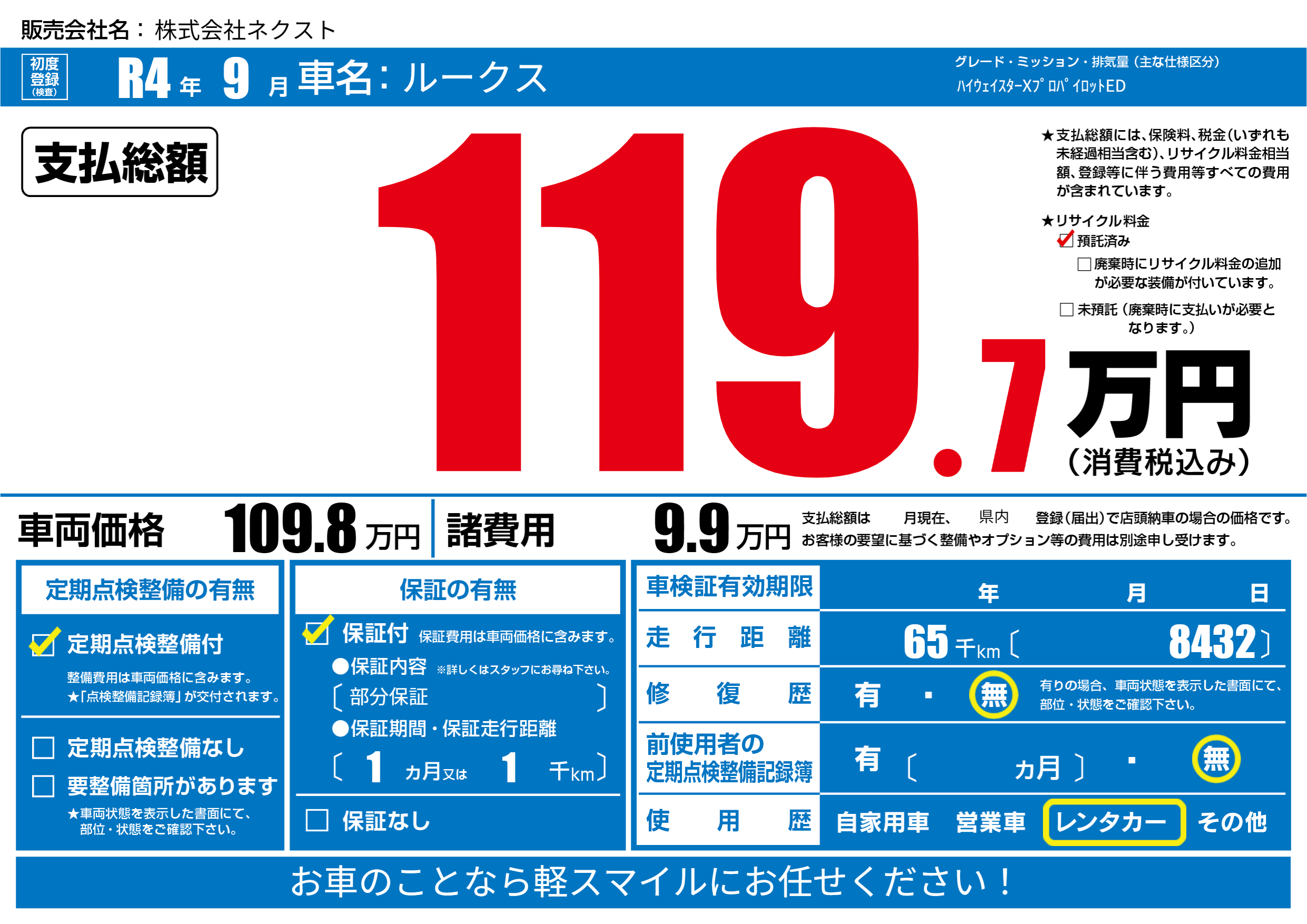 | 定期点検整備 | 定期点検整備あり | ||