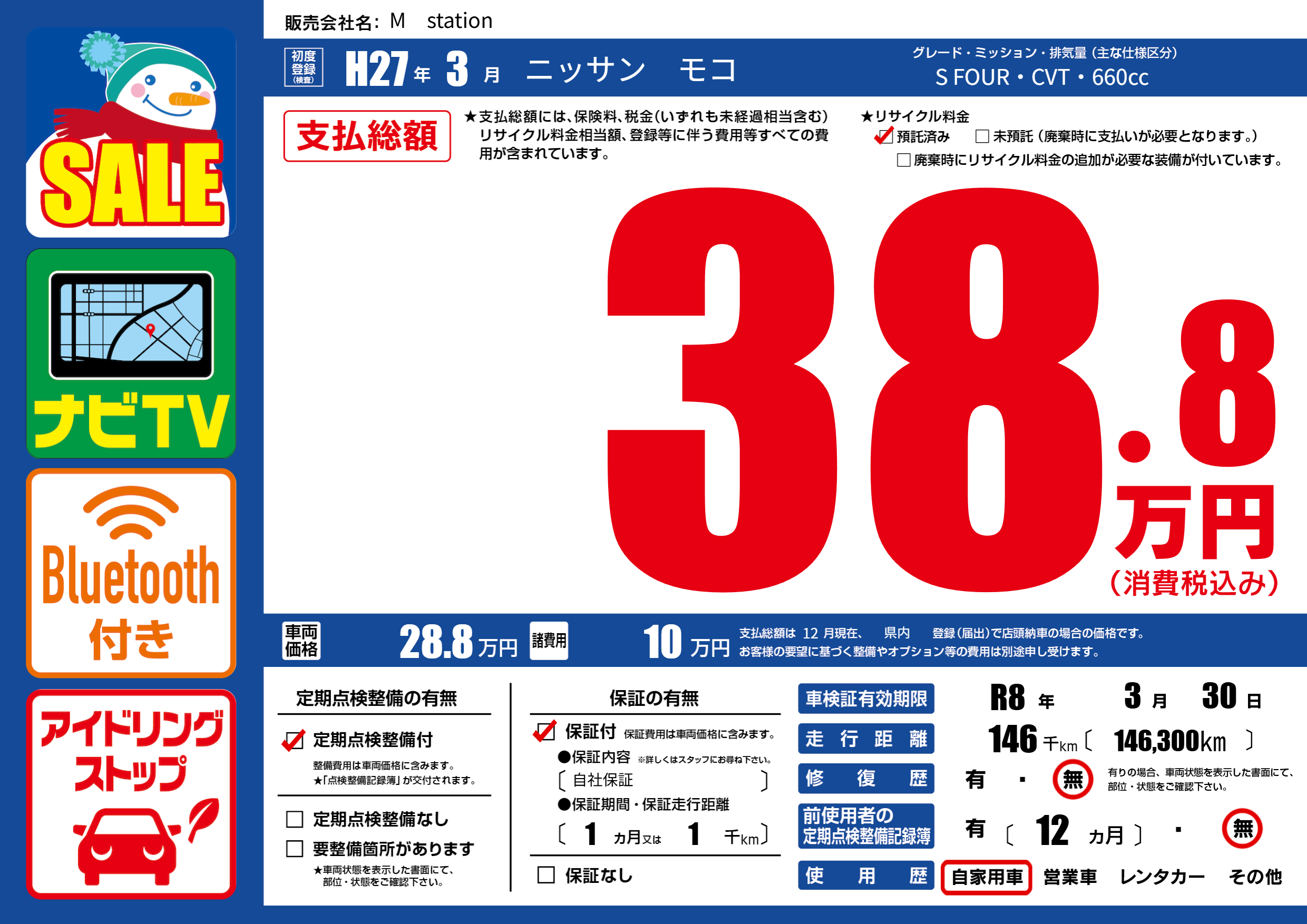 なし | 車検制限 | R8年3月30月 |