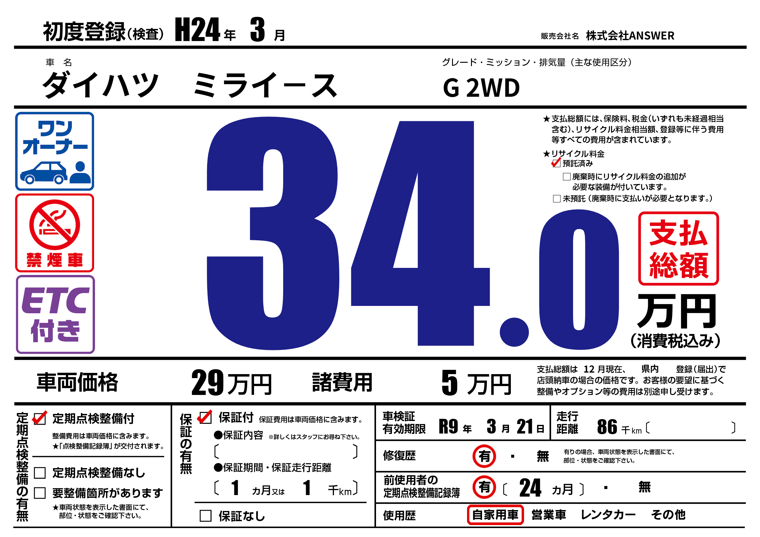 保証付き 保証内容(---) 1ヶ月または(1)千kmまで |