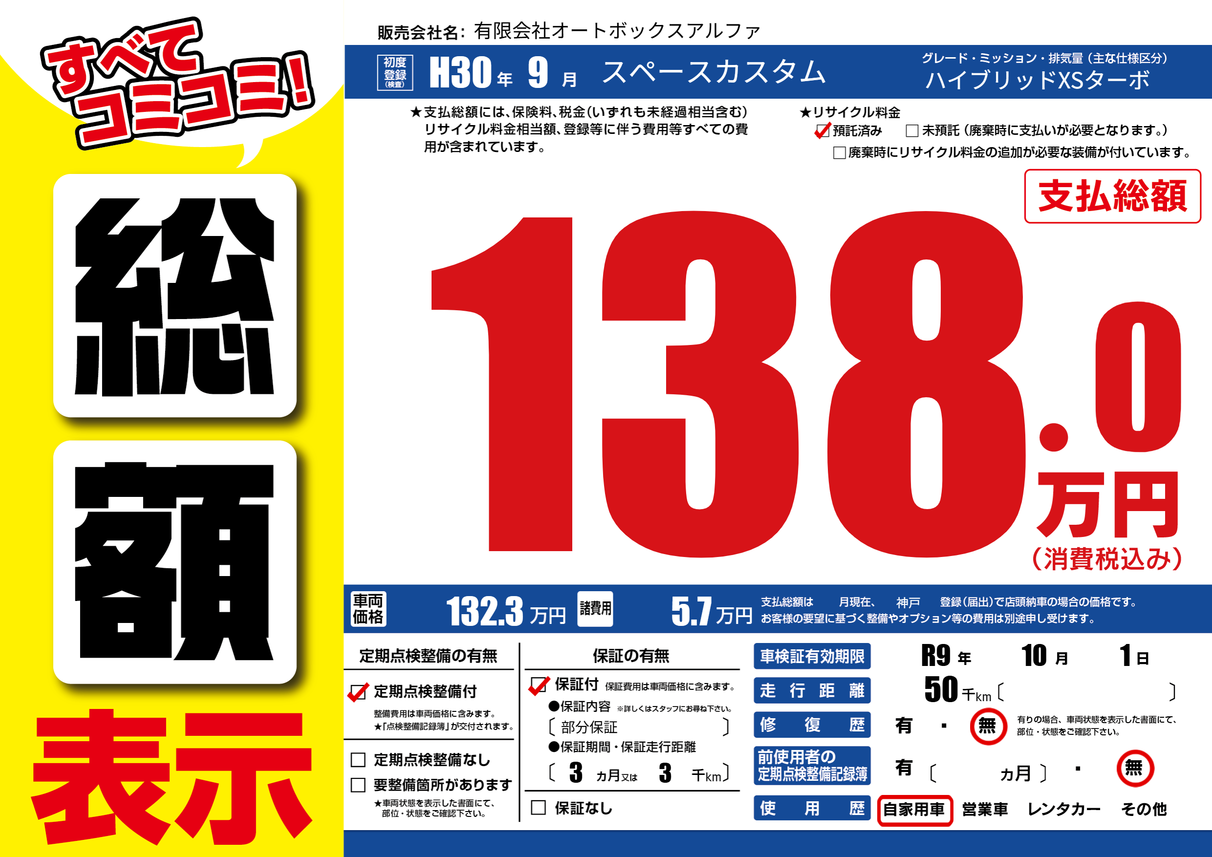 | 車検制限 | R9年 10月 1日 | ||