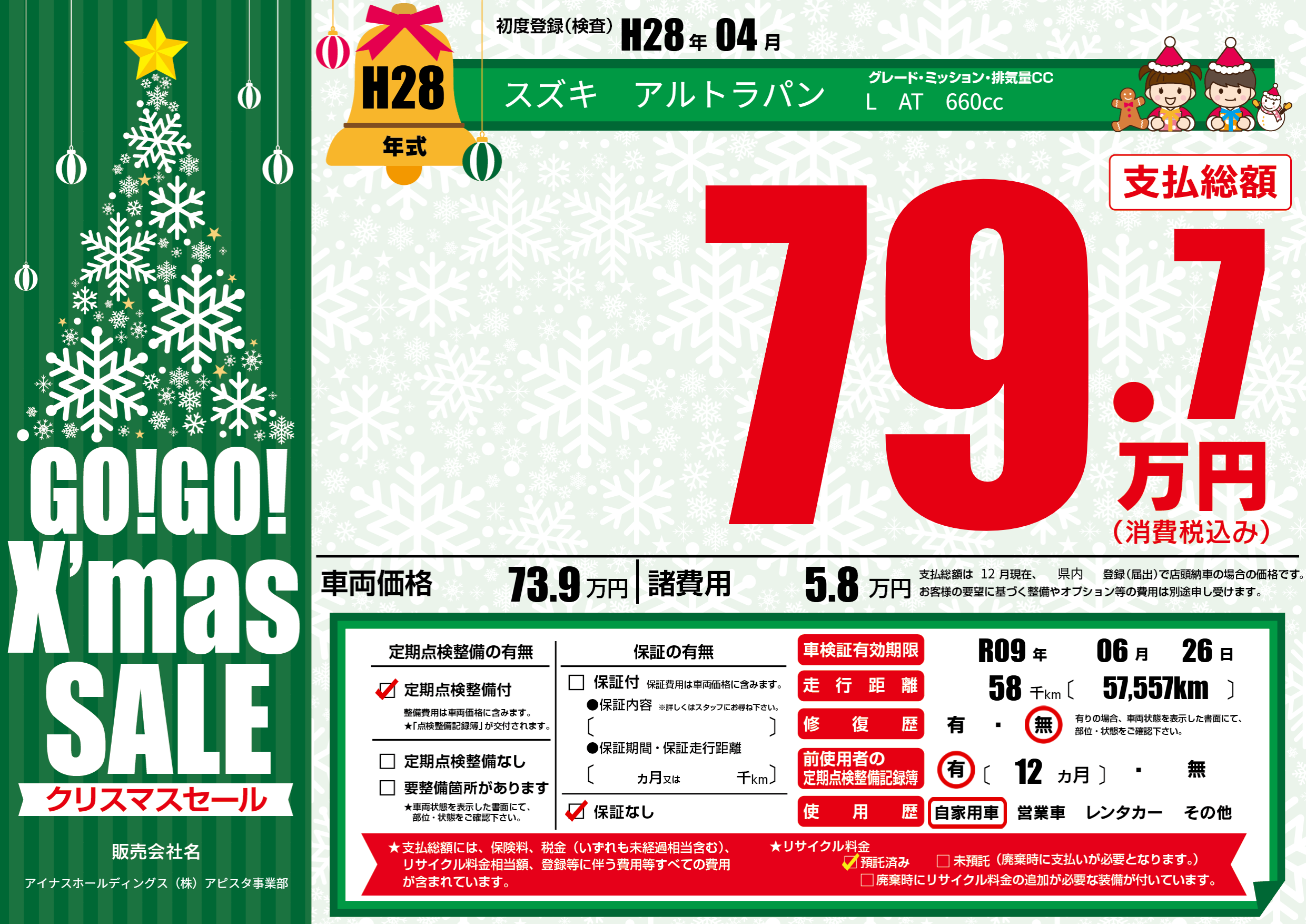 | 定期点検整備 | 定期点検整備あり | ||