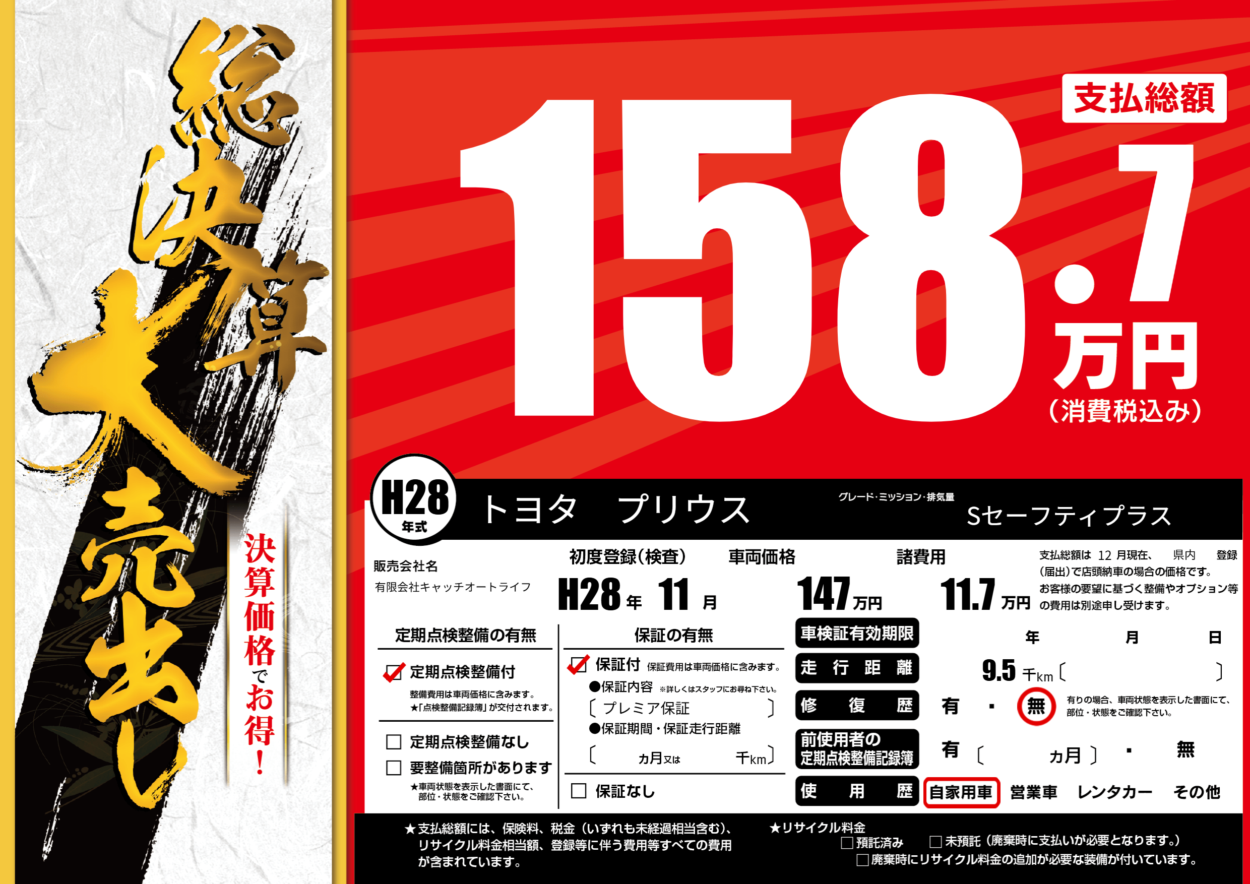 | 定期点検整備 | 定期点検整備あり | ||
