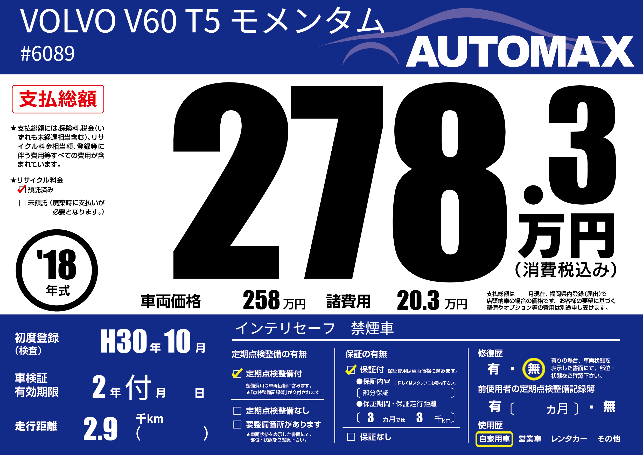 | 定期点検整備 | 定期点検整備あり | ||