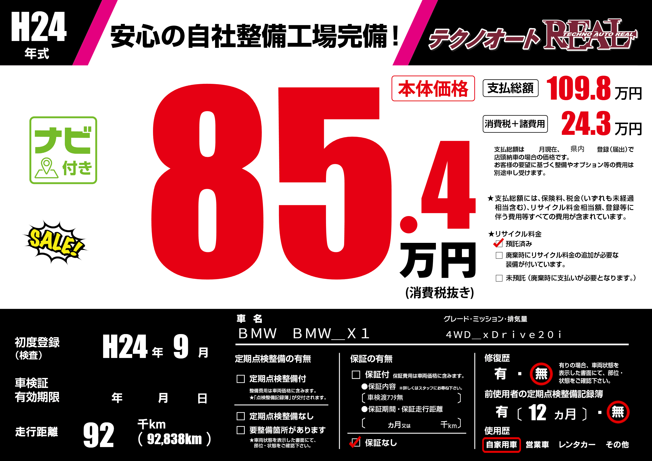 | 車名 | BMW BMW_X1 | グレード ミッション 排気量 |