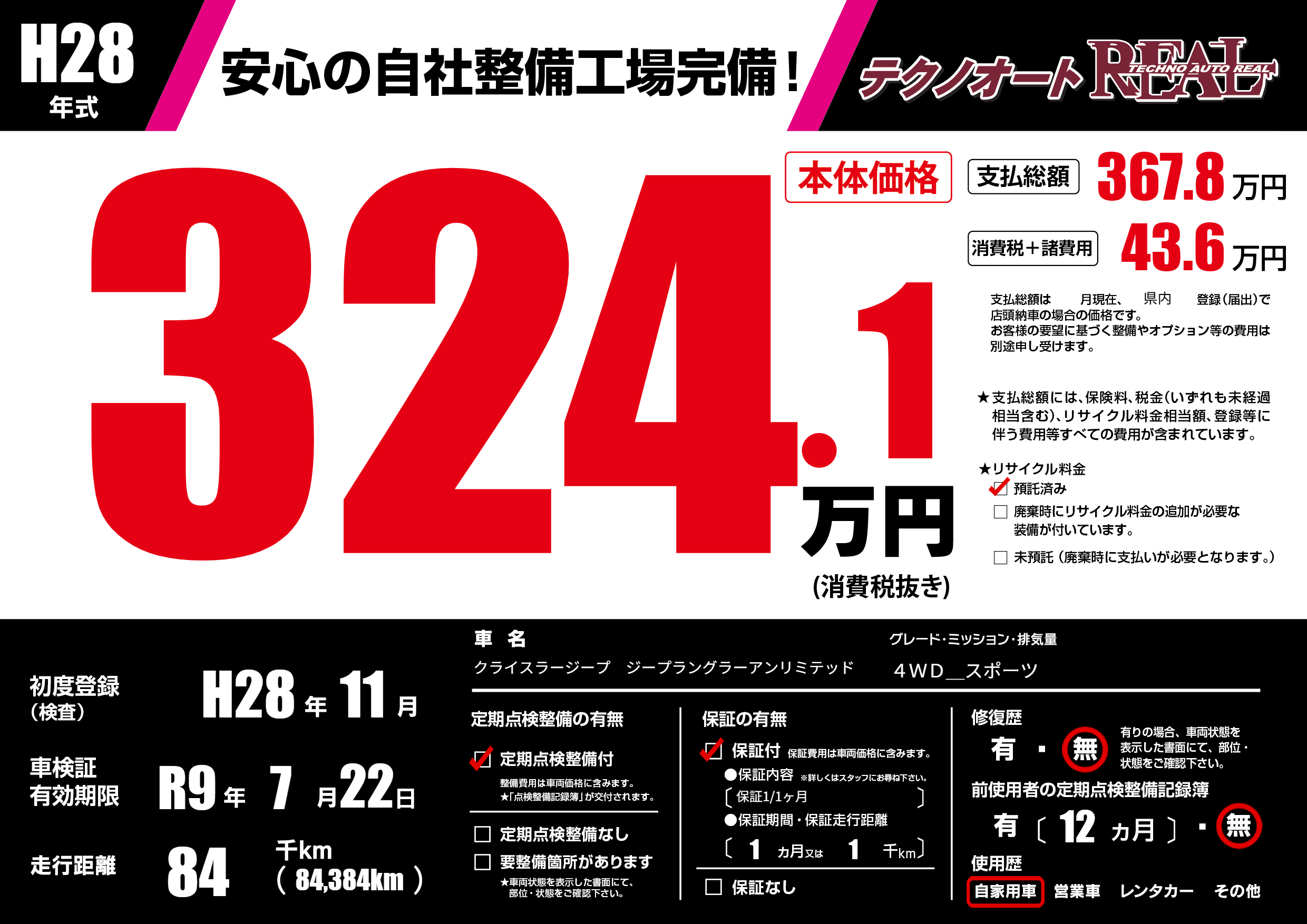 | 走行キロ | 8.4万km | 初年度登録 | H28年11月 |