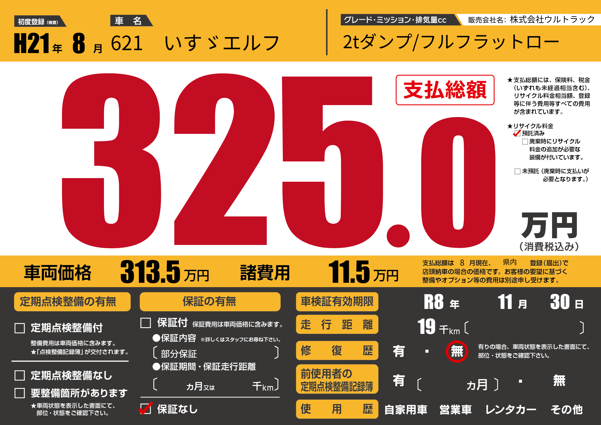 | 車名 | 621 いすゞエルフ | グレード ミッション 排気量 |
