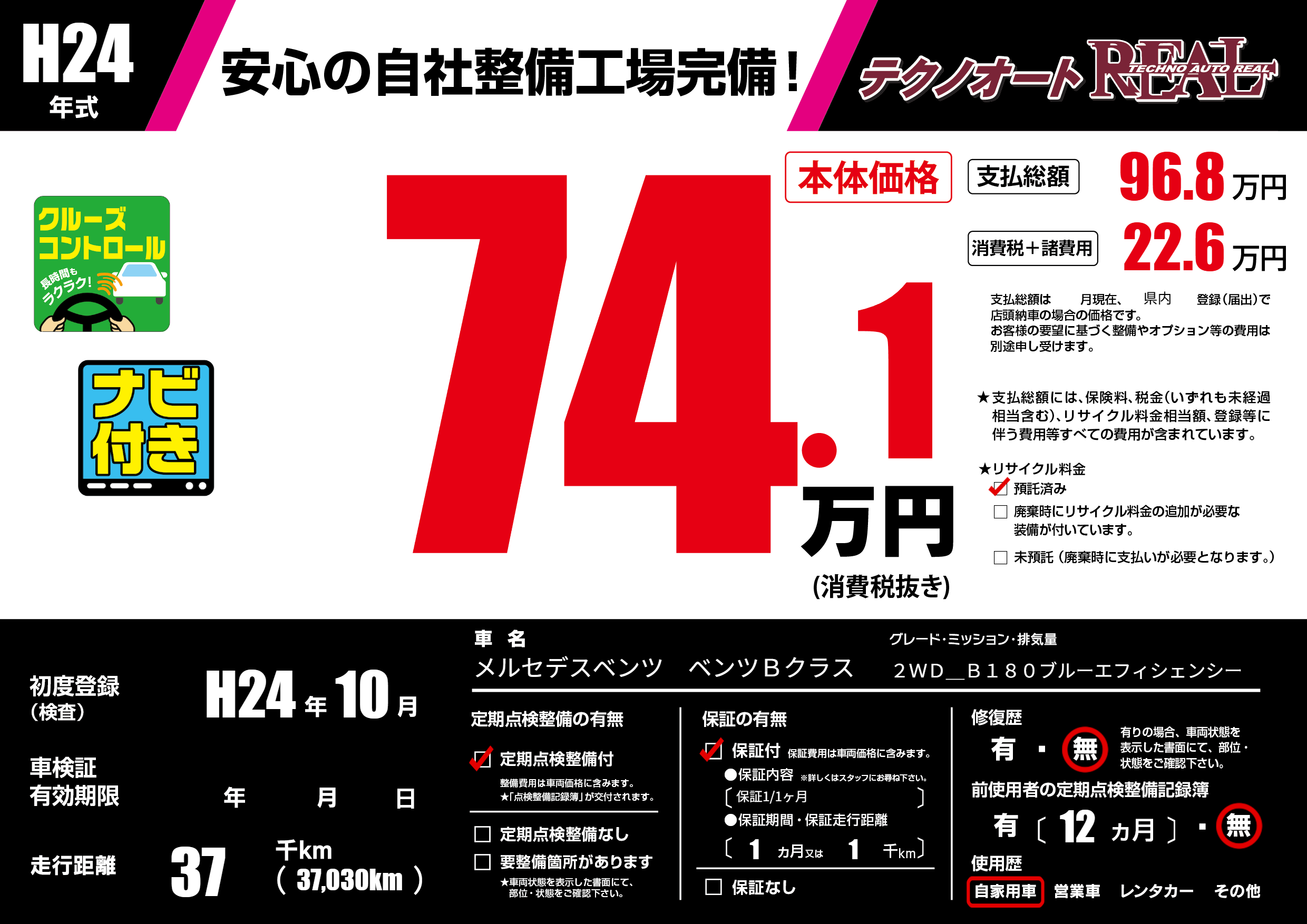 | 走行キロ | 3.7万km | 初年度登録 | H24年10月 |
