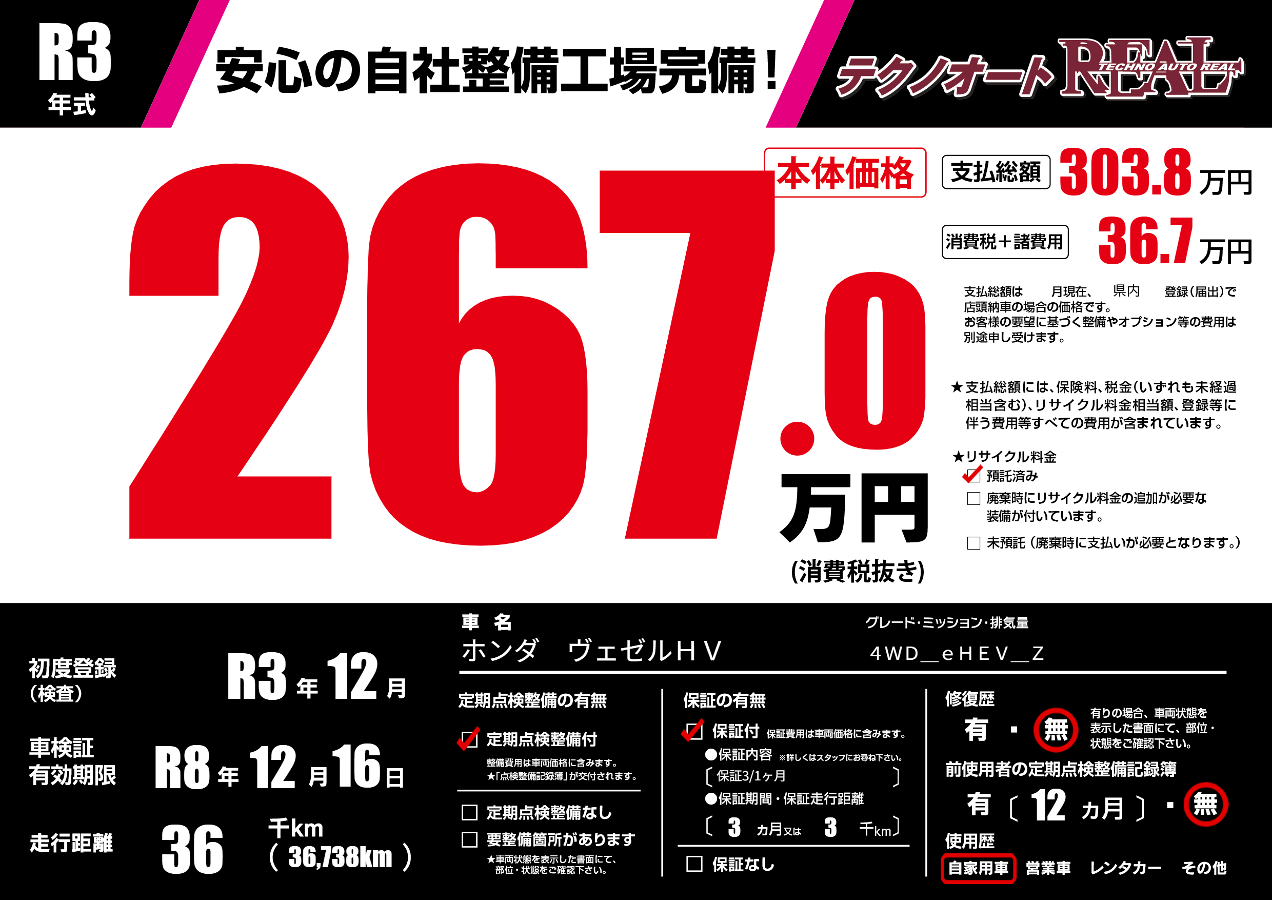 | 走行キロ | 3.6万km | 初年度登録 | R3年12月 |