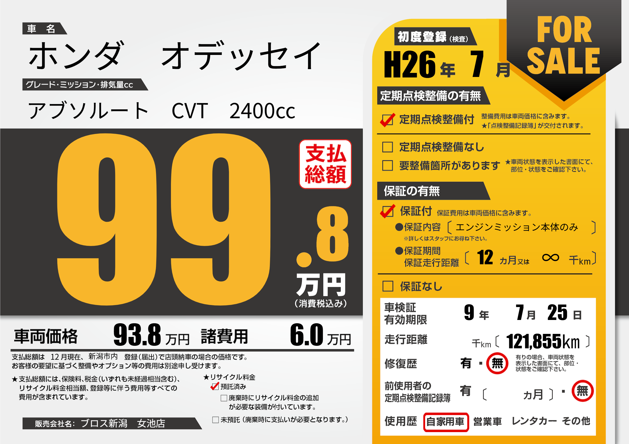 なし | 車検制限 | 9年7月25月 |