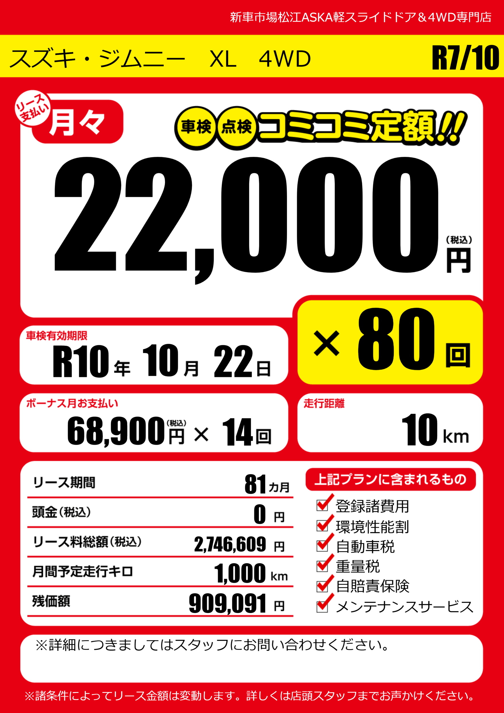 | 車名 | スズキ・ジムニー XL 4WD | グレード ミッション 排気量 |