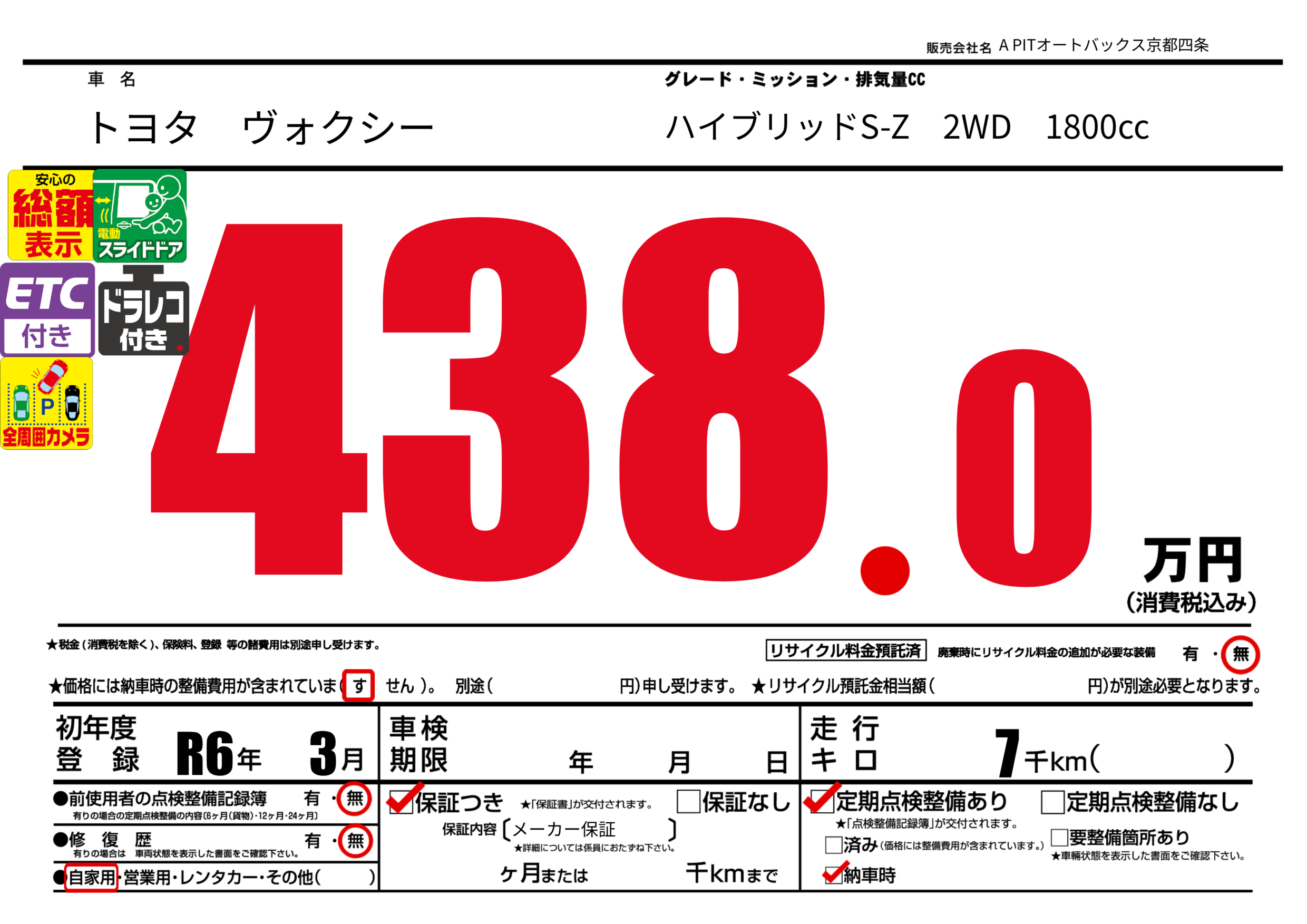 | 車名 | トヨタ ヴォクシー | グレード ミッション 排気量 |