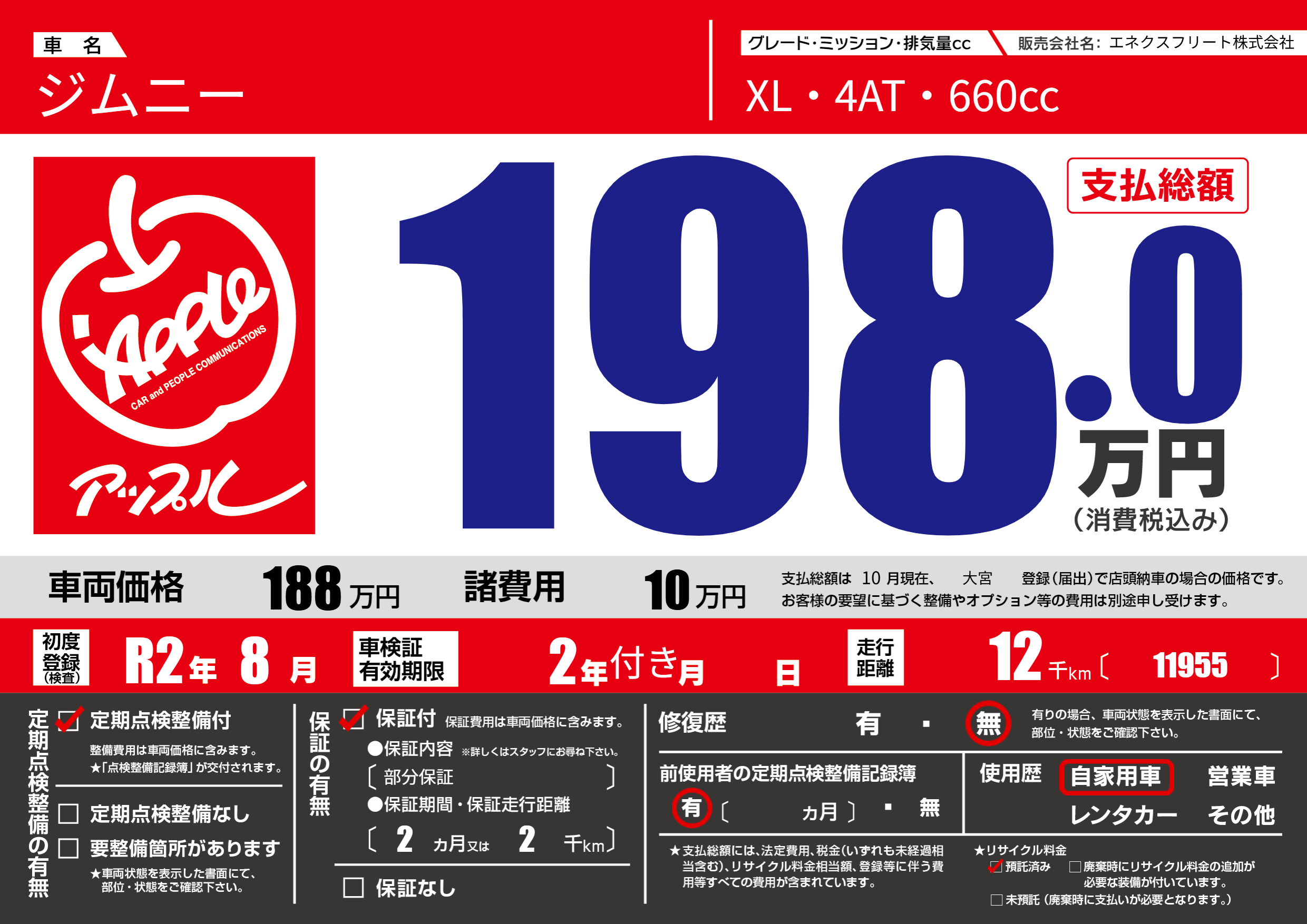 | 車名 | ジムニー | グレード ミッション 排気量 |