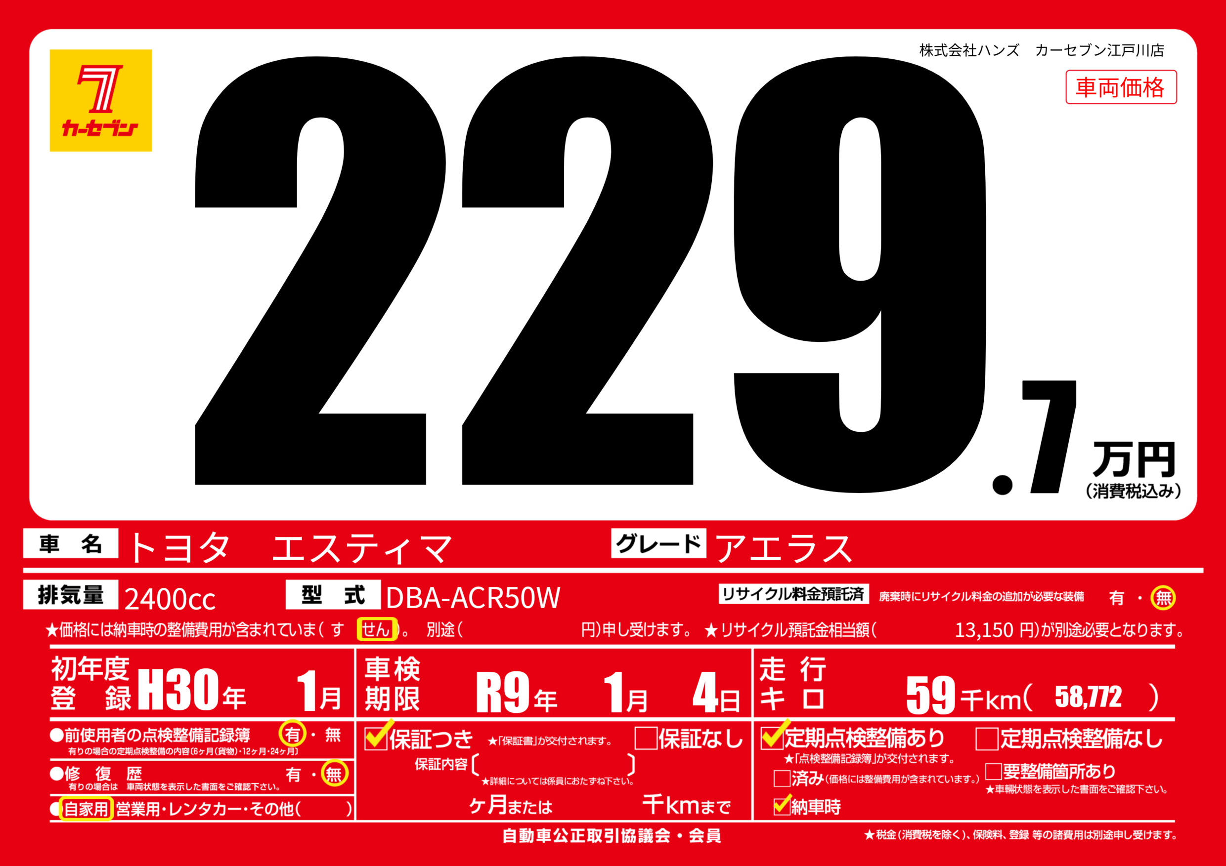 なし | 車検制限 | R9年1月4月 |