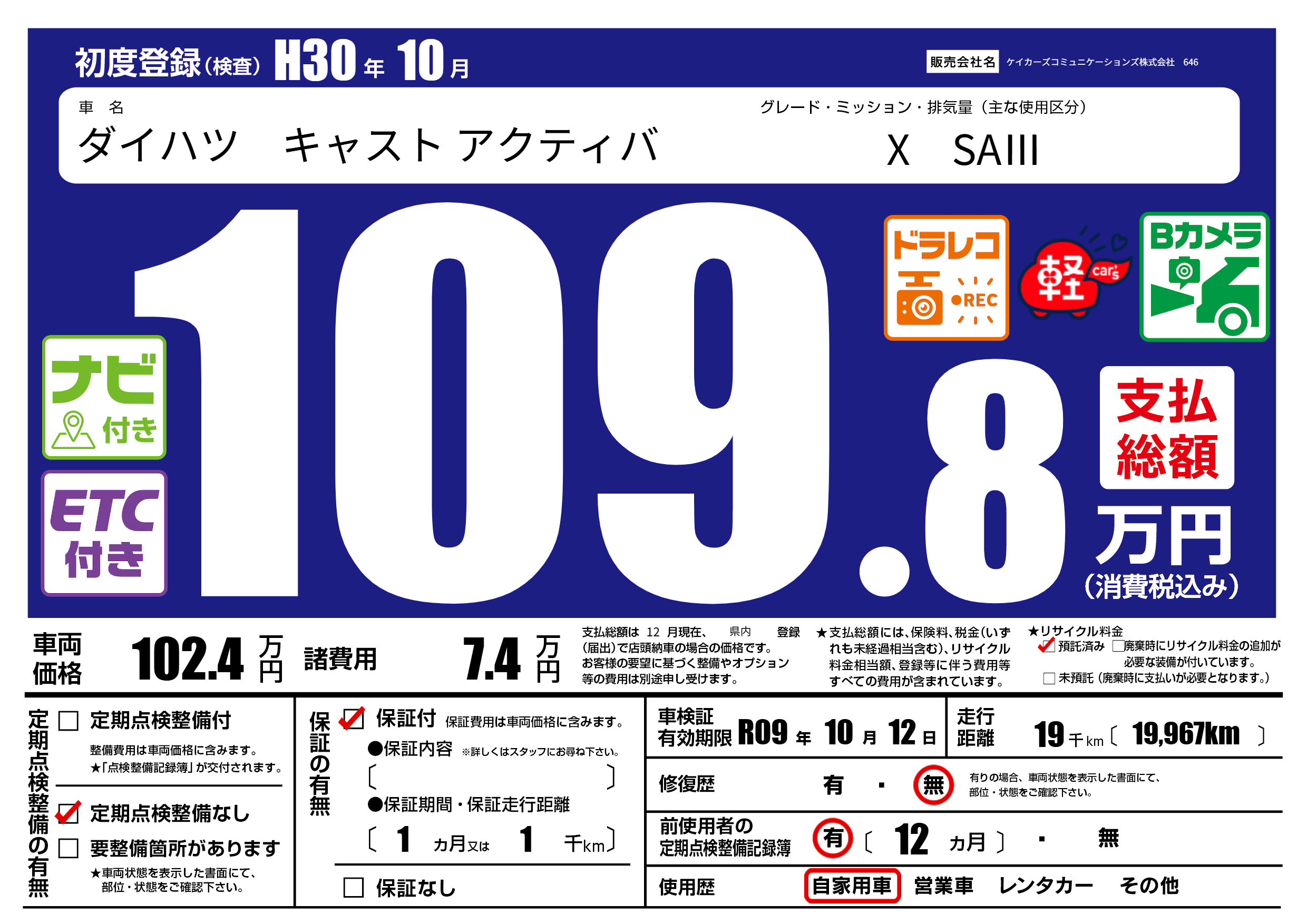 なし | 車検制限 | R09年10月12月 |