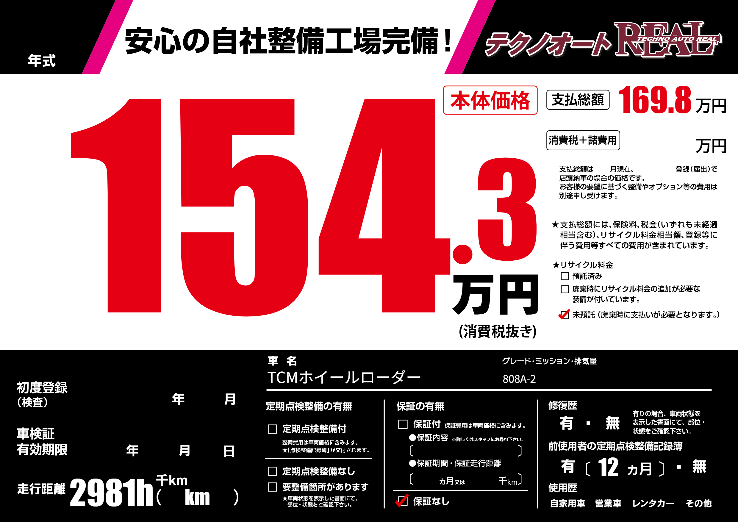 | 車名 | TCMホイールローダー | グレード ミッション 排気量 |