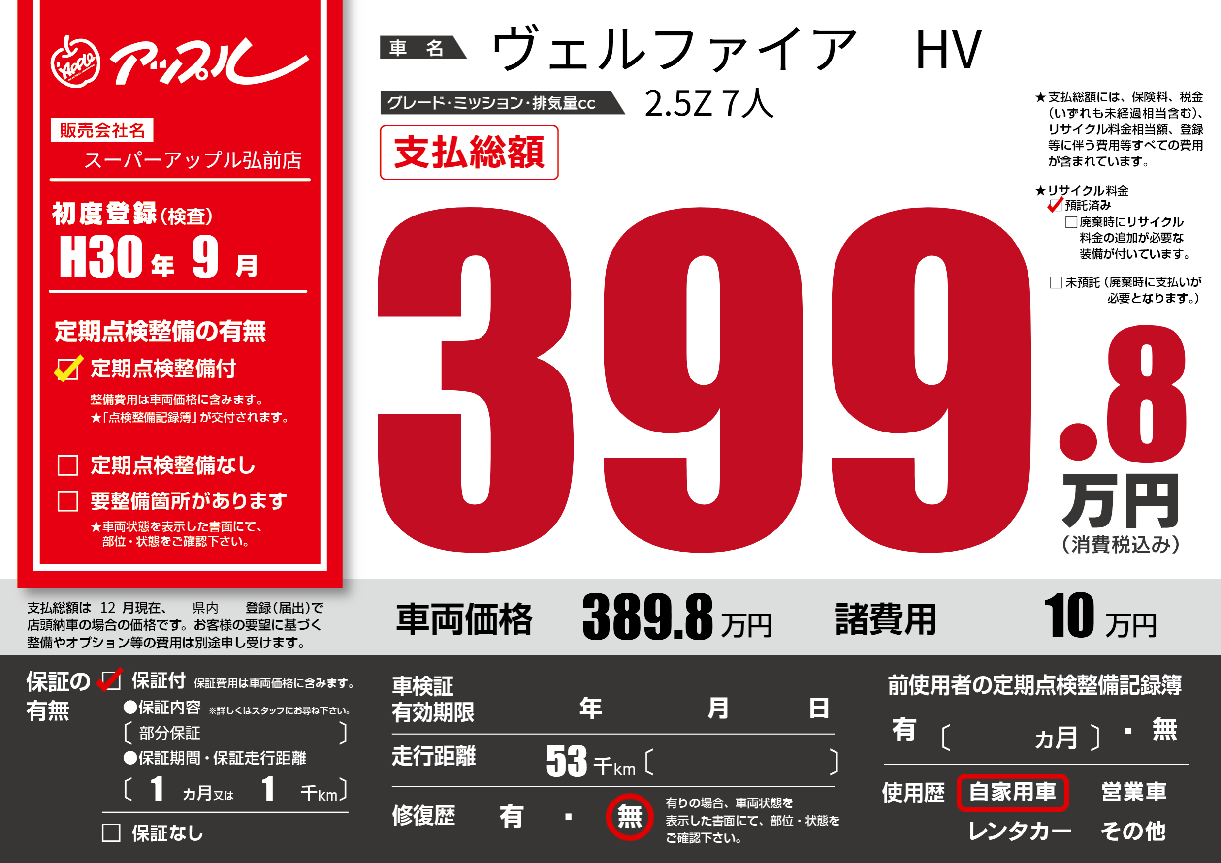 | 定期点検整備 | 定期点検整備あり | ||