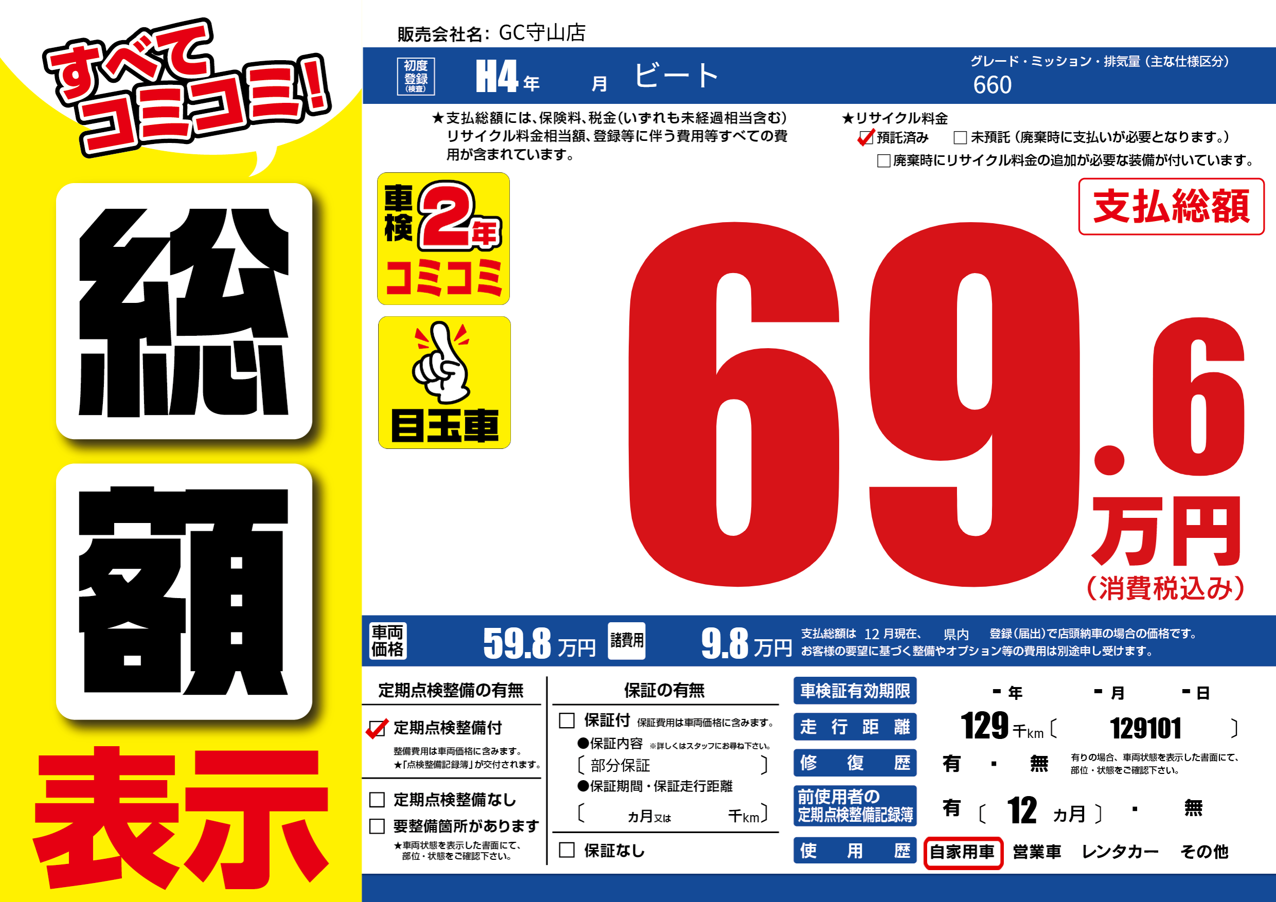 | 走行キロ | 12.9万km | 初年度登録 | H4年---月 |