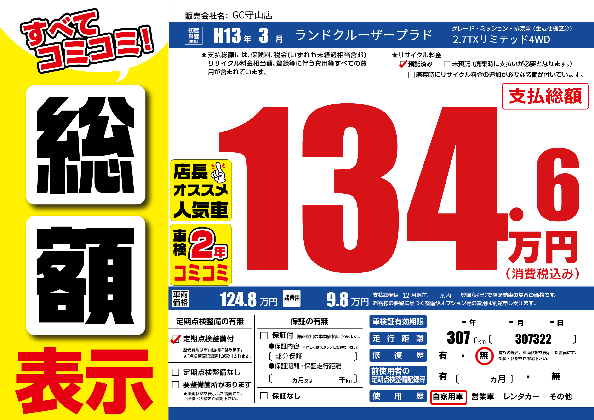 | 車名 | ランドクルーザープラド | グレード ミッション 排気量 |