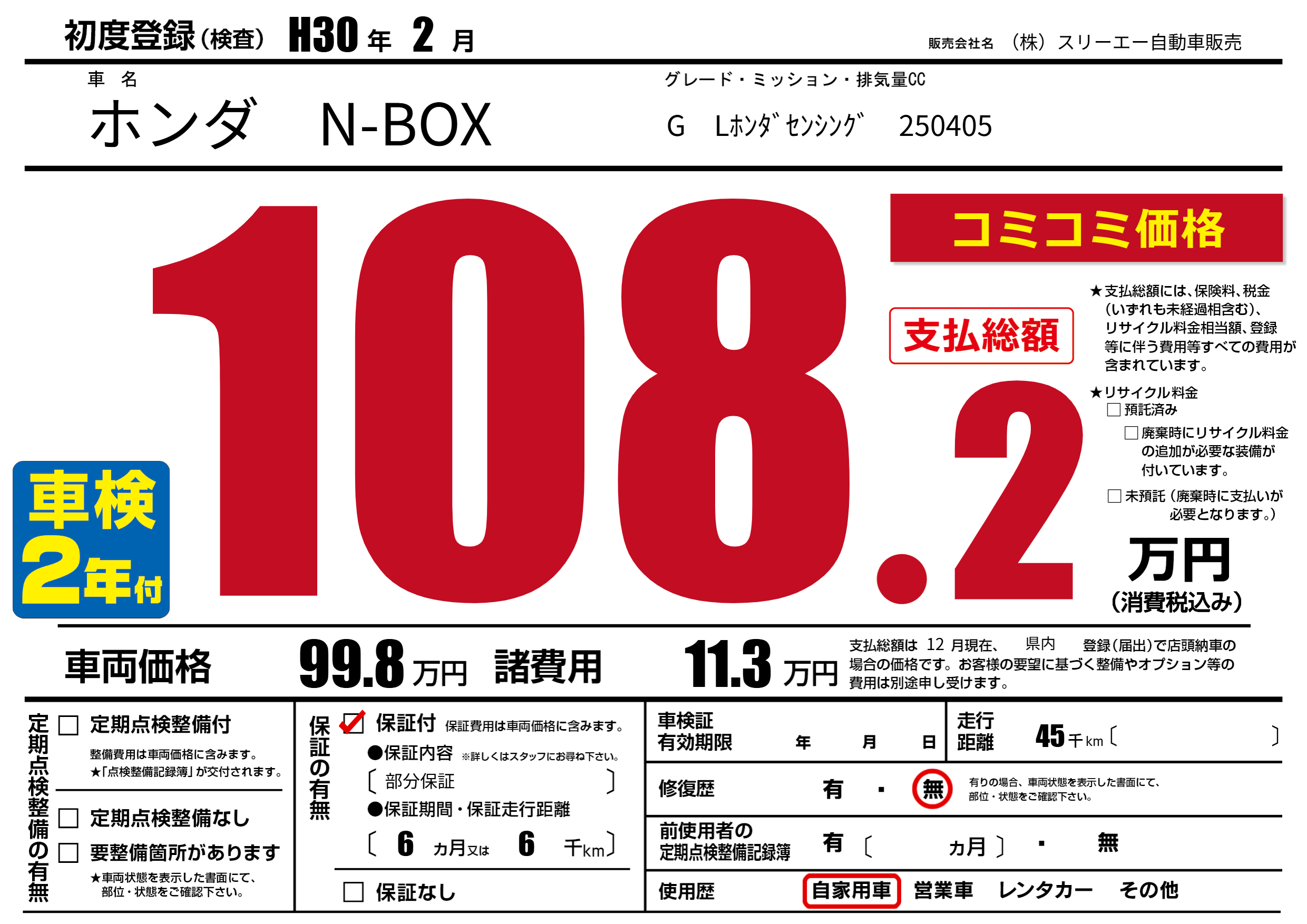 保証付き 保証内容(部分保証) 6ヶ月または(6)千kmまで |