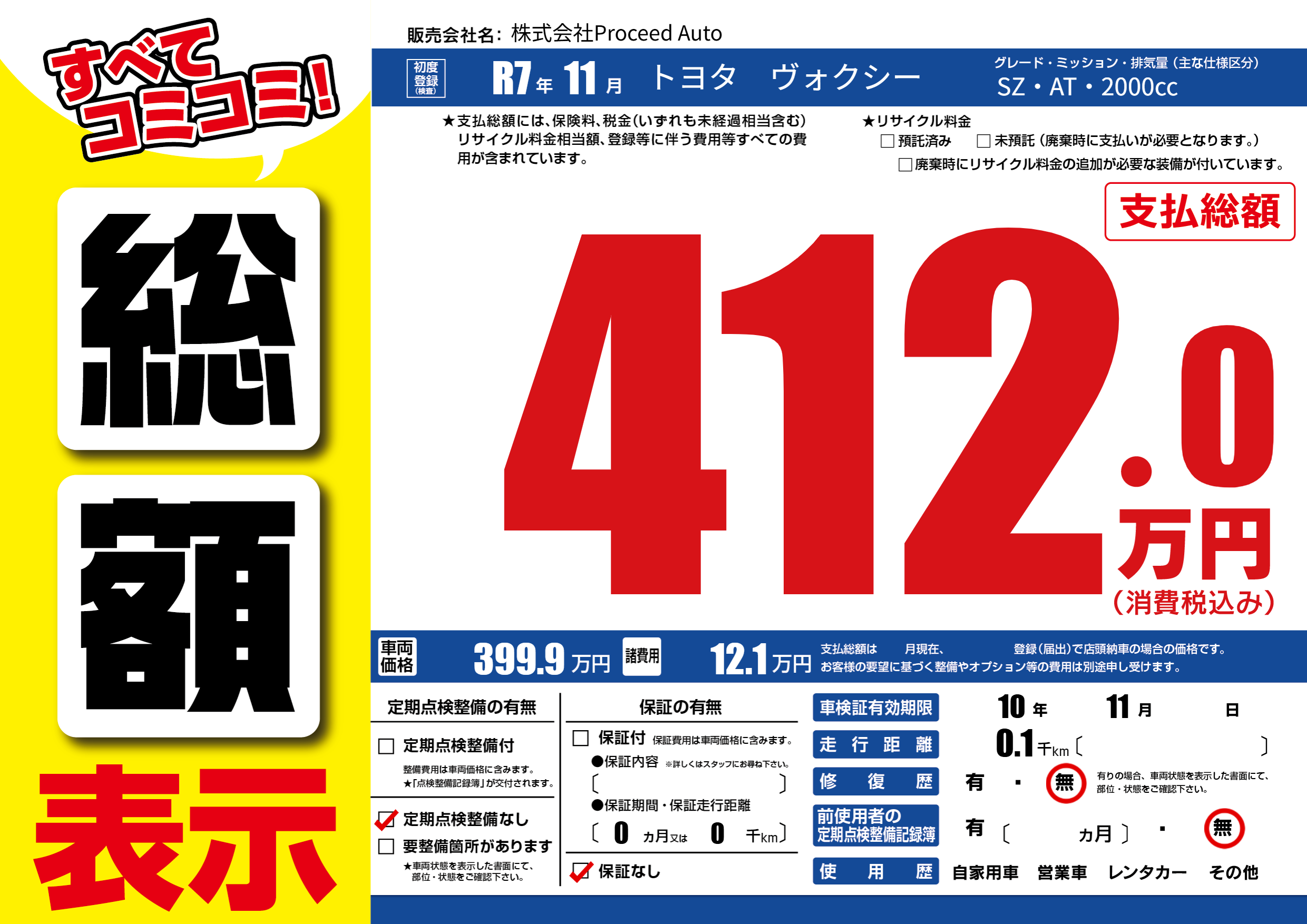 | 走行キロ | - | 初年度登録 | R7年11月 |