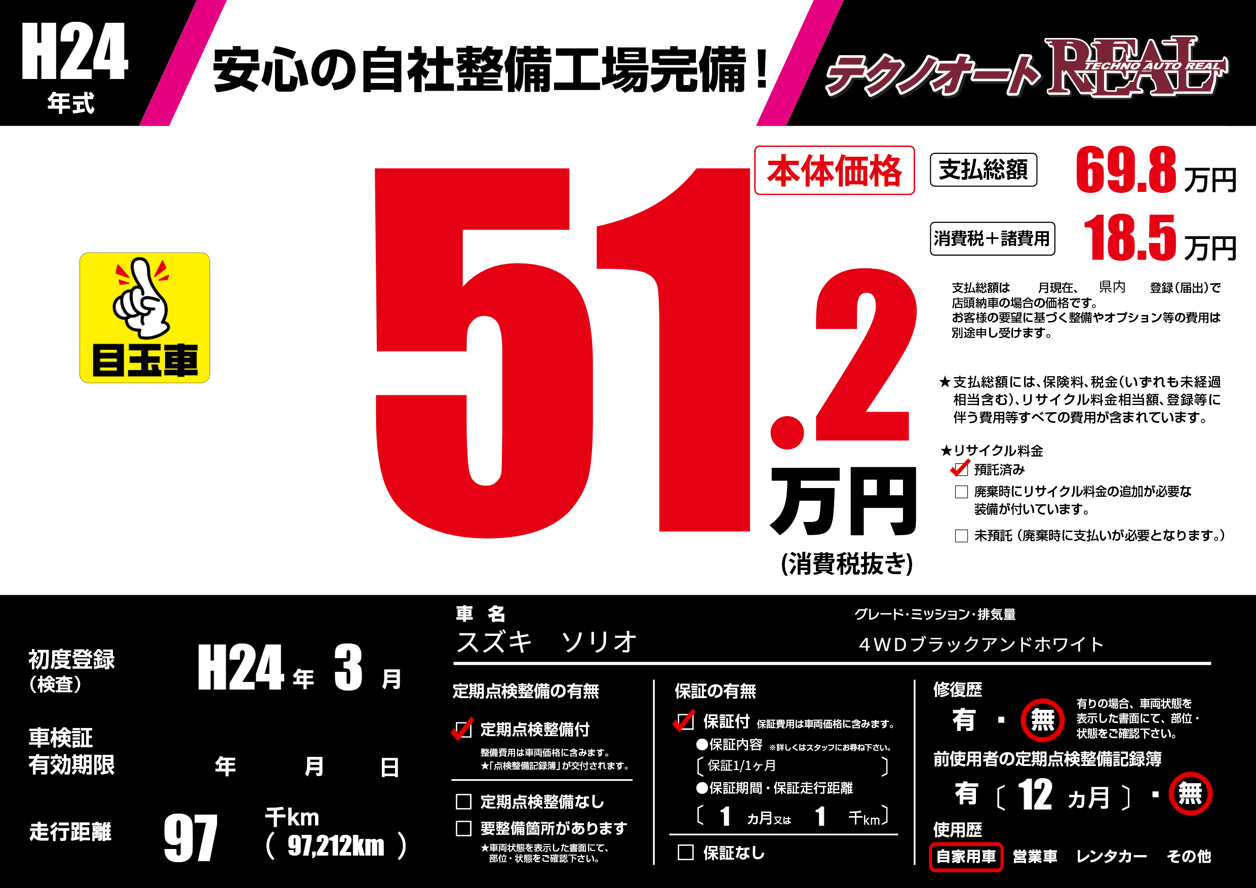 | 走行キロ | 9.7万km | 初年度登録 | H24年3月 |