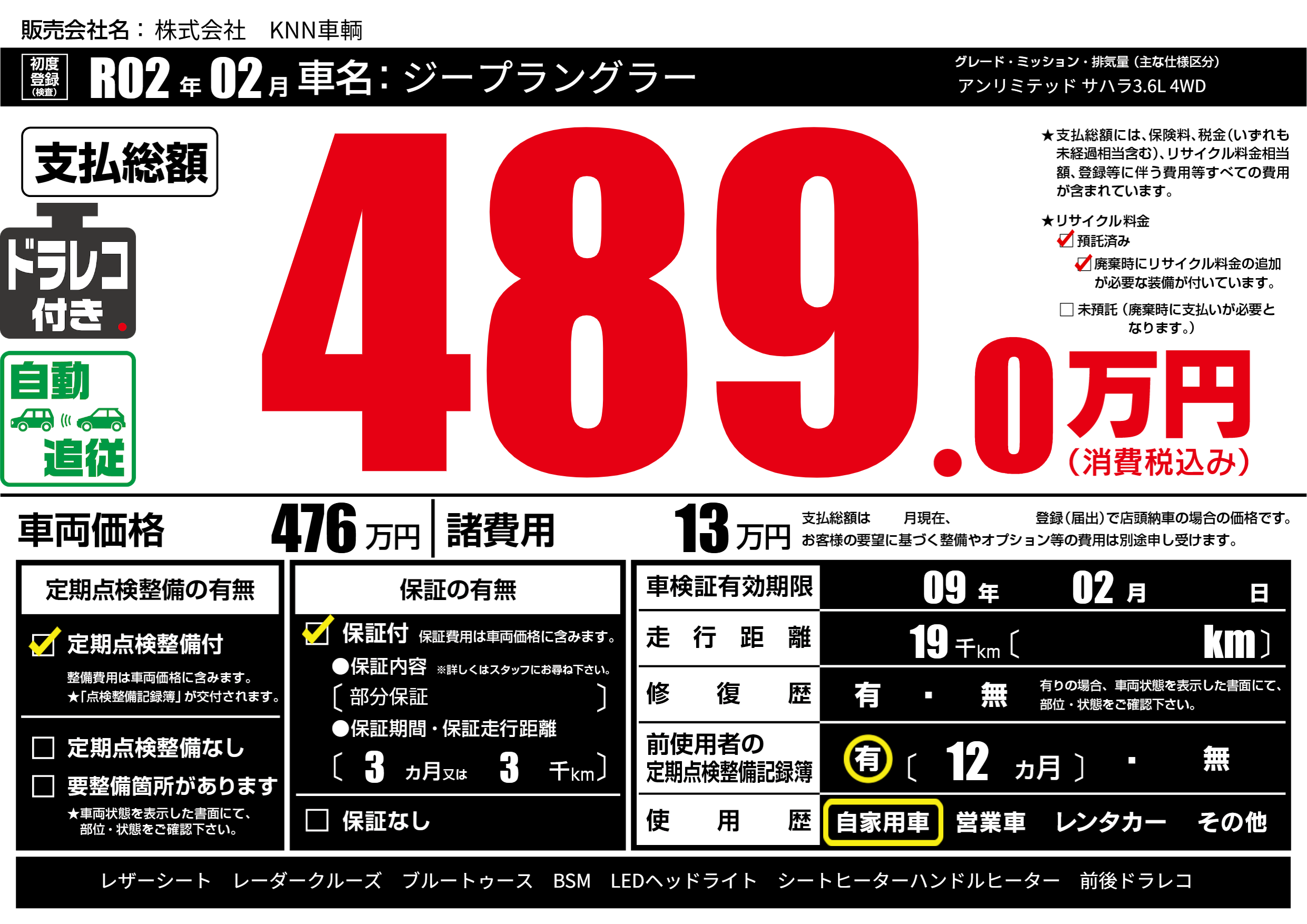 なし | 車検制限 | 09年02月---月 |