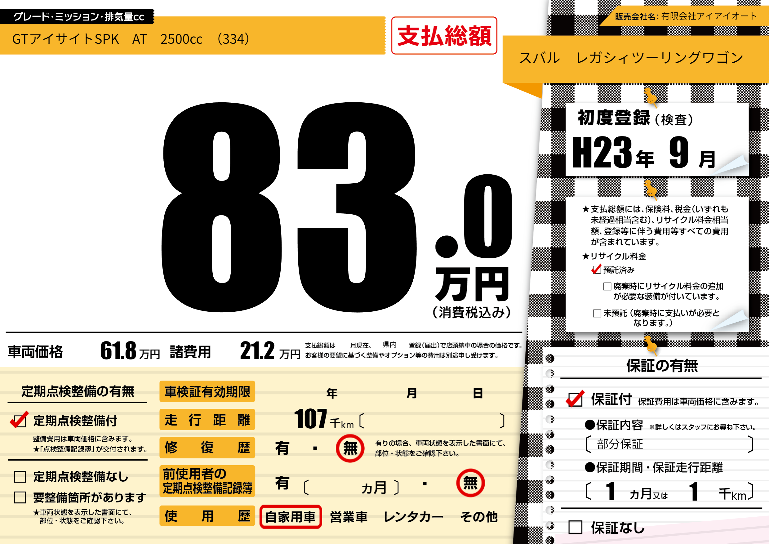 | 定期点検整備 | 定期点検整備あり | ||