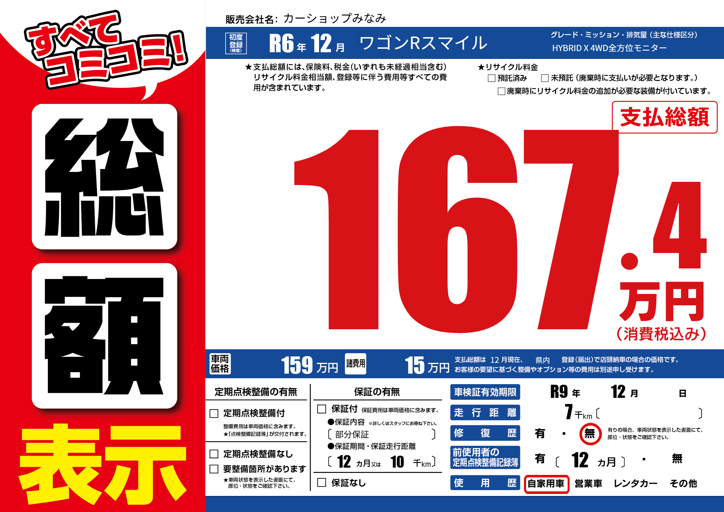| 車名 | ワゴンRスマイル | グレード ミッション 排気量 |