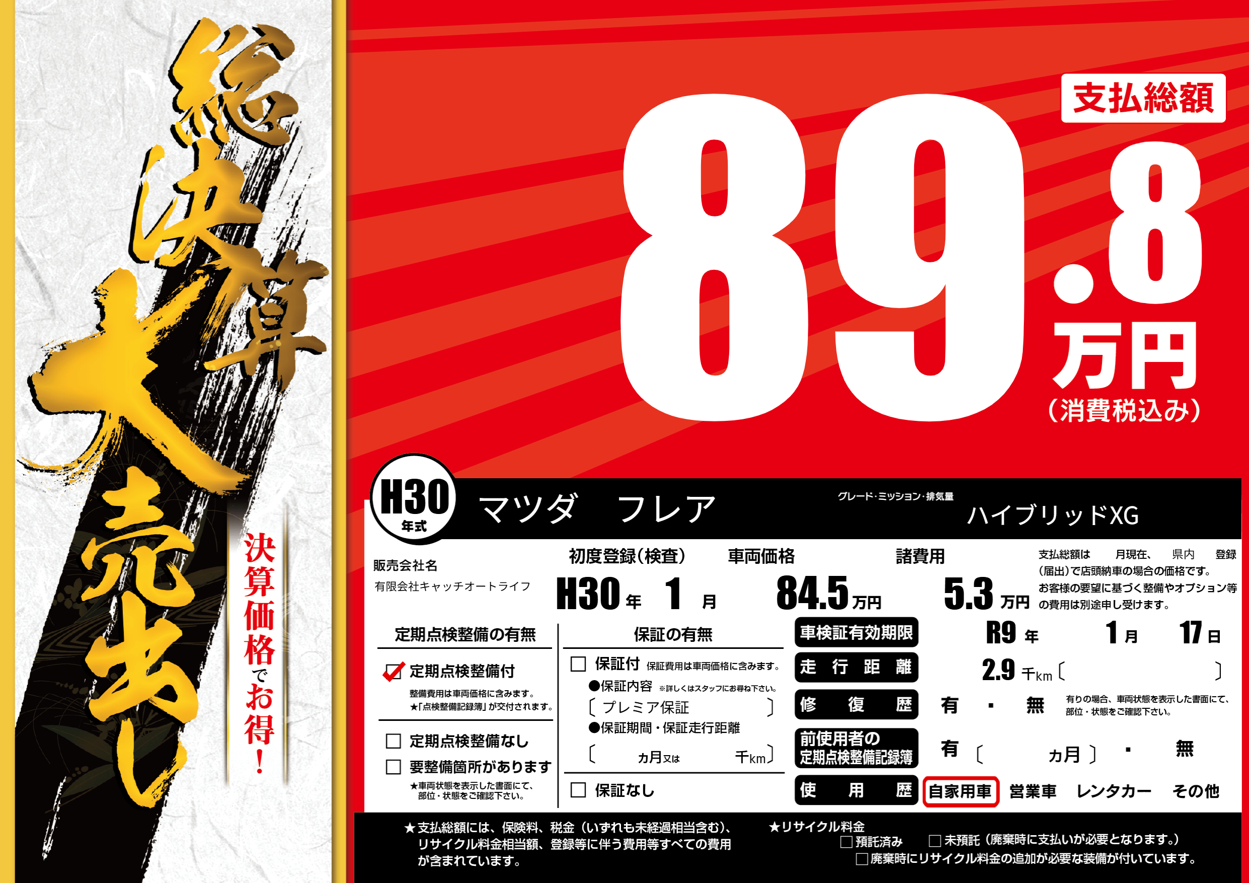 | 車検制限 | R9年 1月 17日 | ||