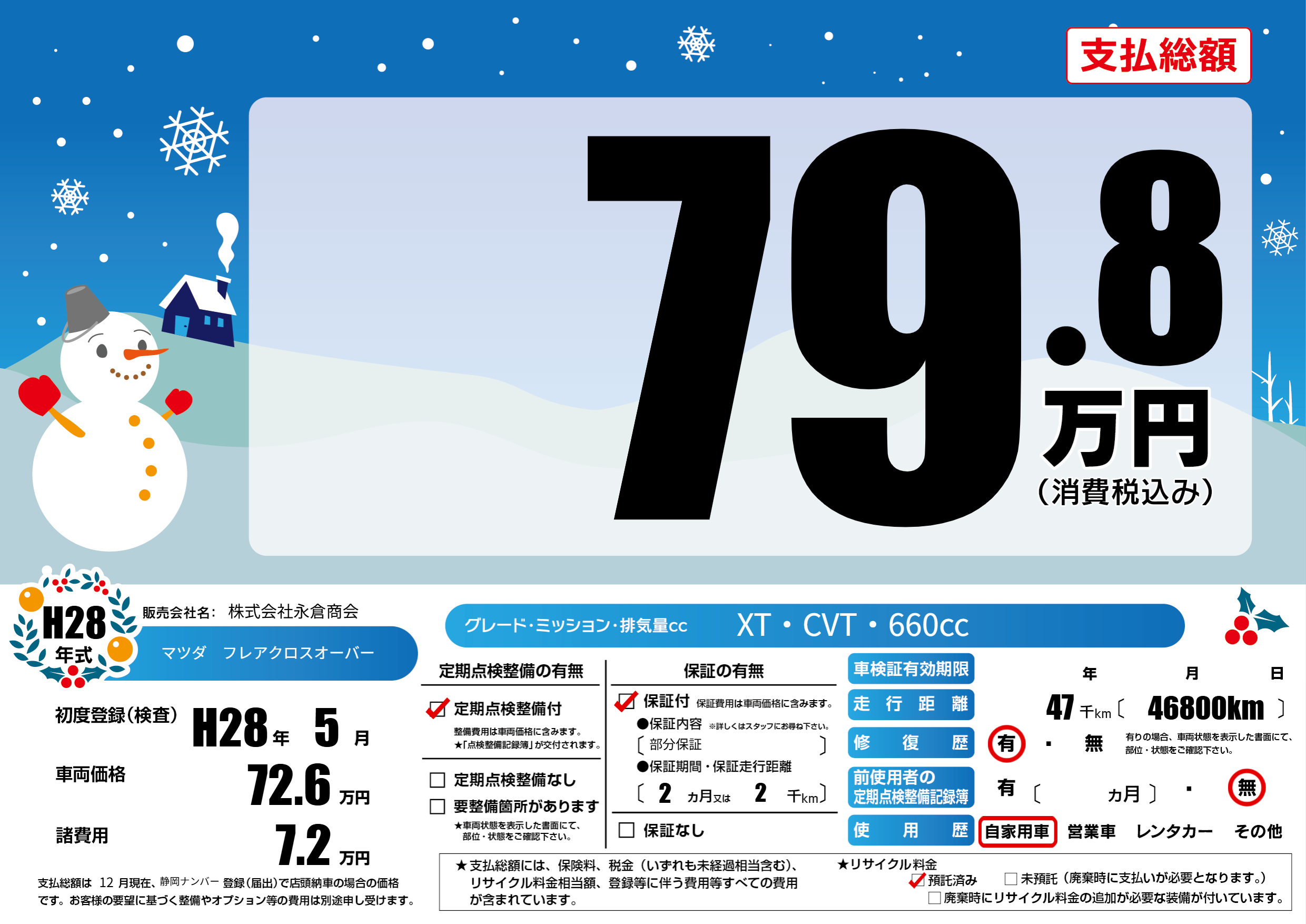 | 走行キロ | 4.7万km | 初年度登録 | H28年5月 |