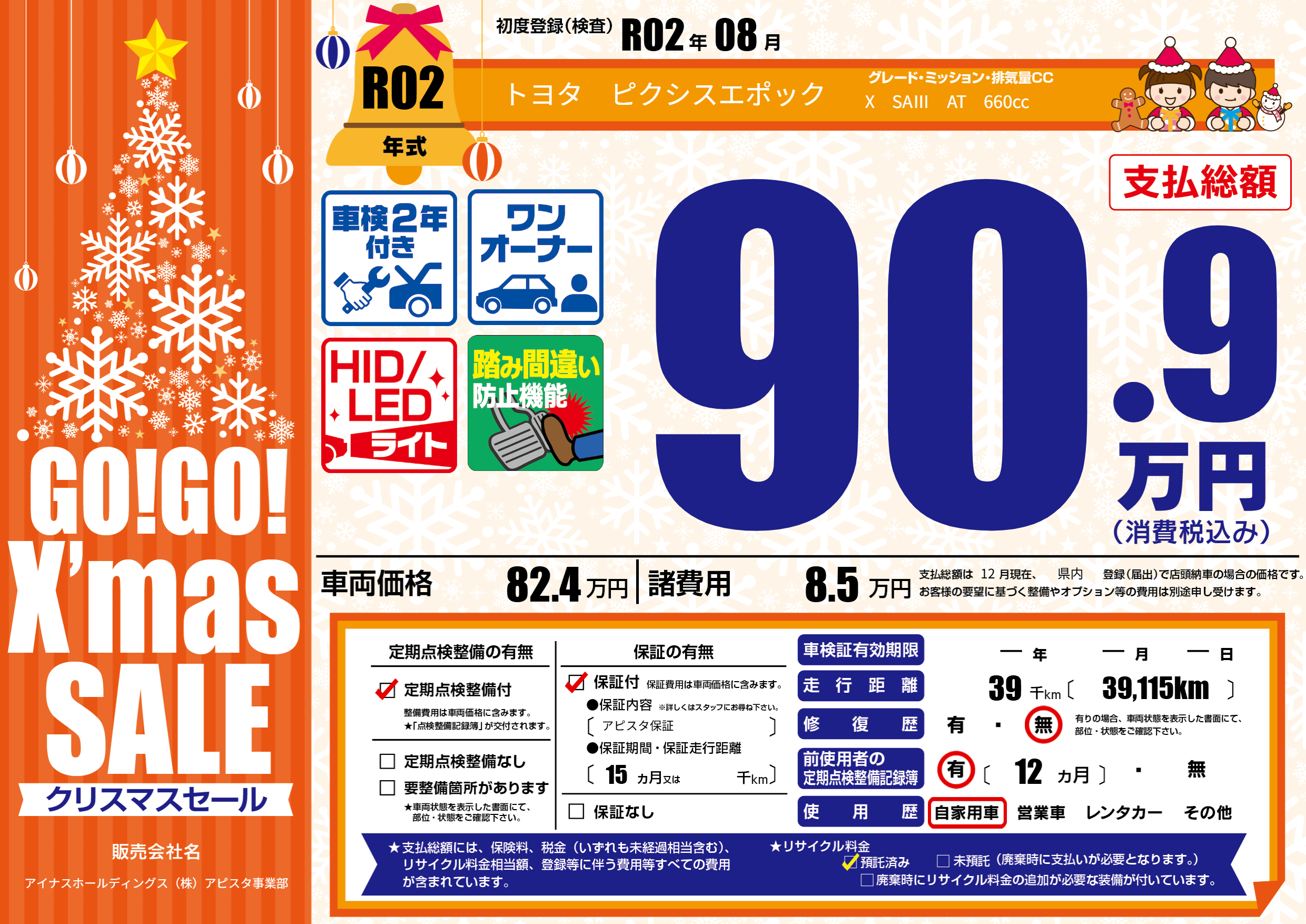 | 車名 | トヨタ ピクシスエポック | グレード ミッション 排気量 |