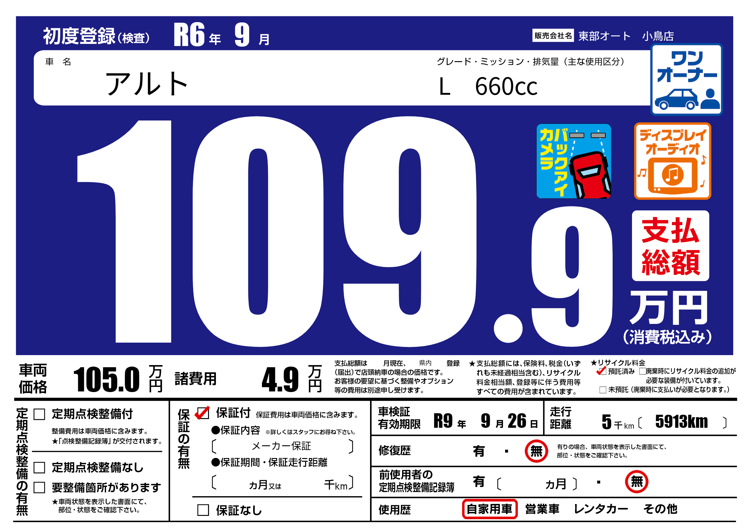 保証付き 保証内容( メーカー保証) ---ヶ月または()千kmまで |