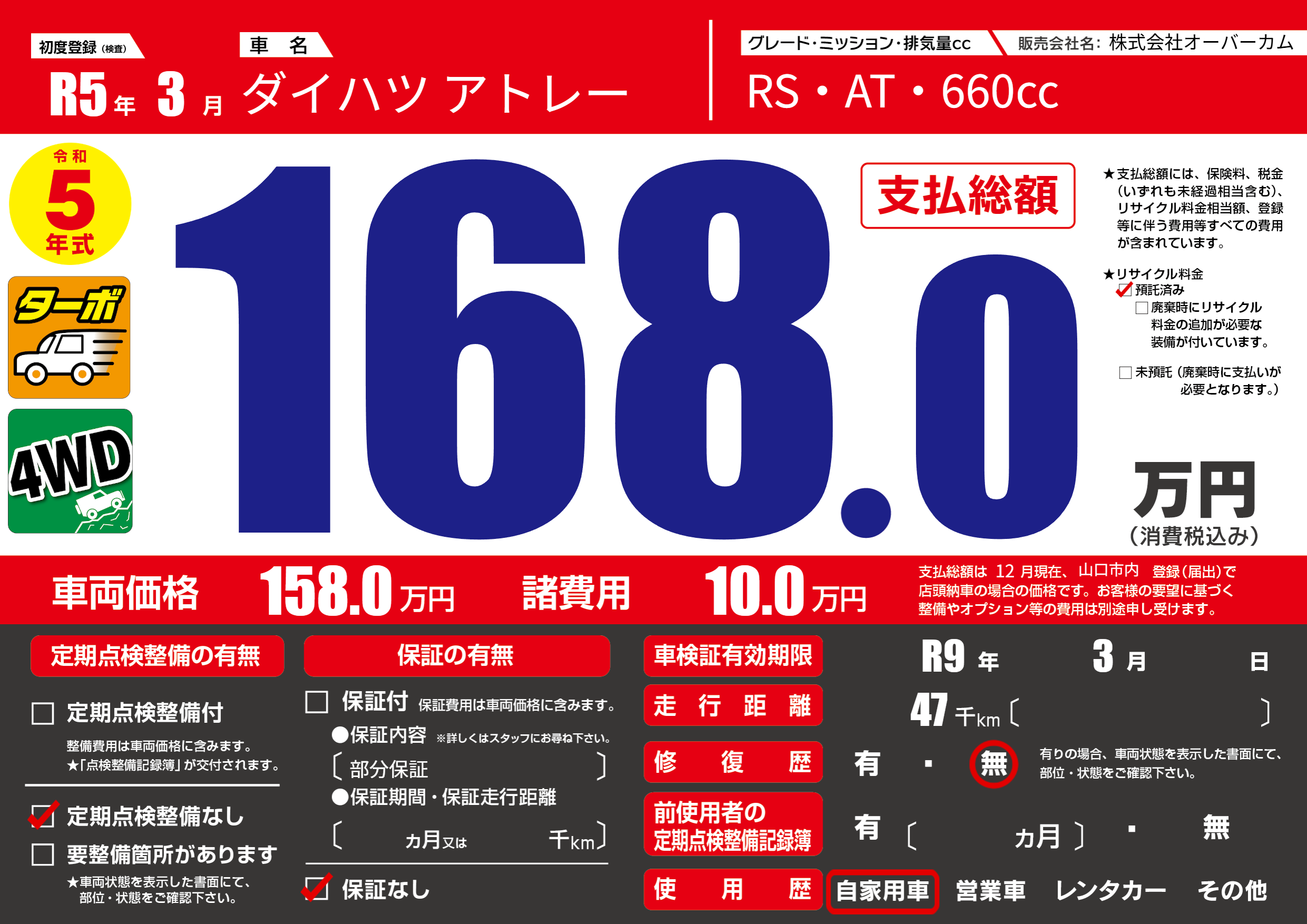 | 走行キロ | 4.7万km | 初年度登録 | R5年3月 |