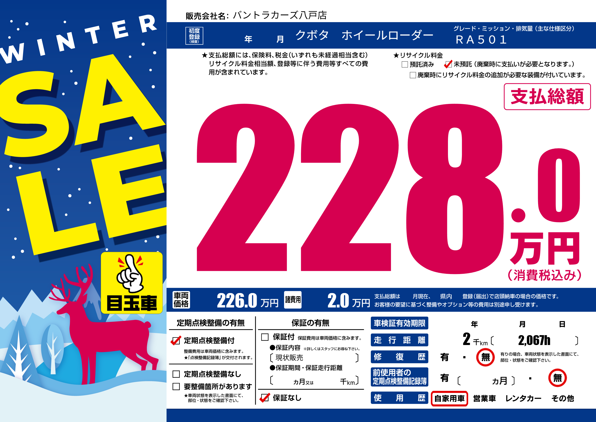 保証なし 保証内容(現状販売) ---ヶ月または()千kmまで |