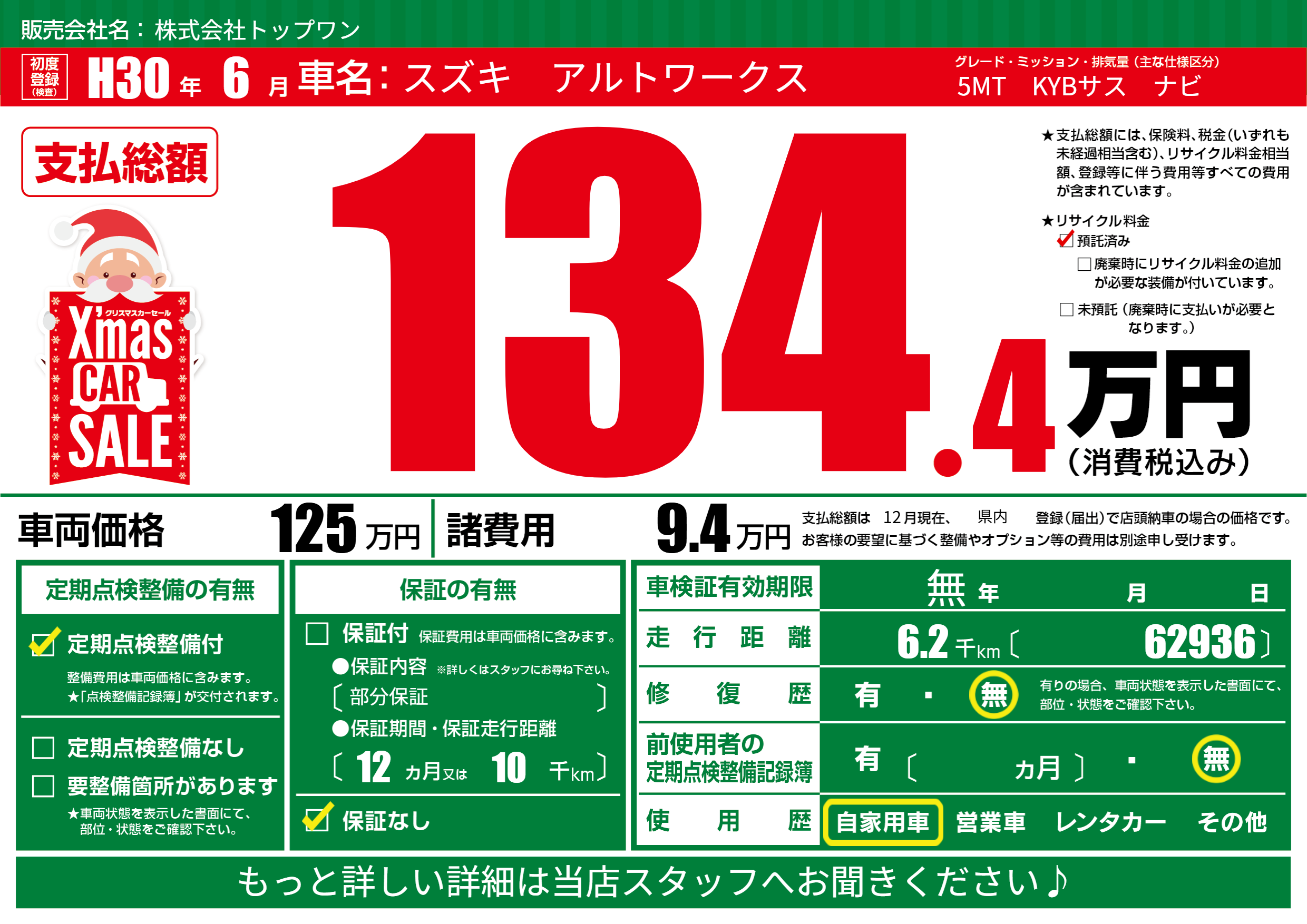 | 車名 | スズキ アルトワークス | グレード ミッション 排気量 |