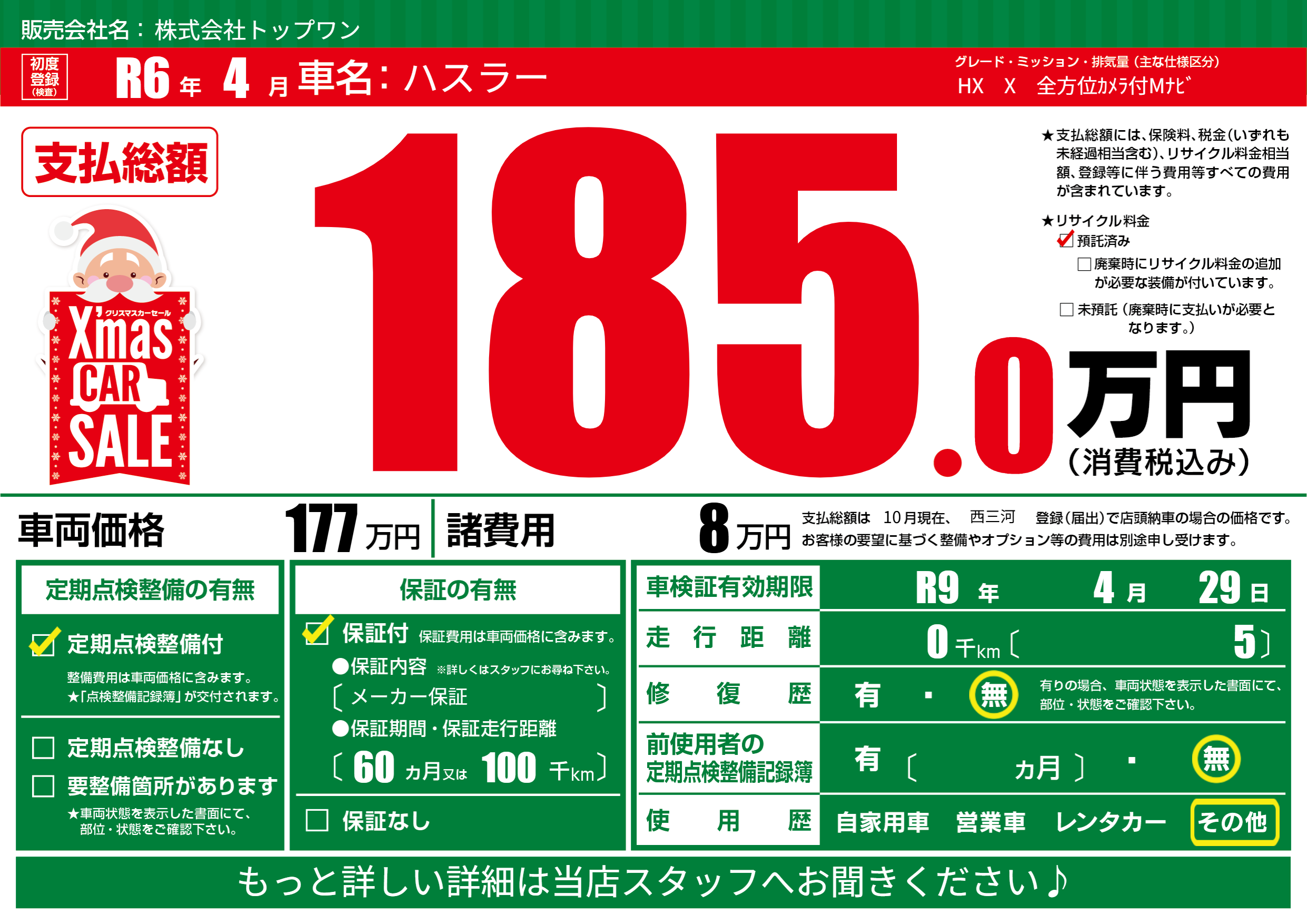 | 走行キロ | - | 初年度登録 | R6年4月 |
