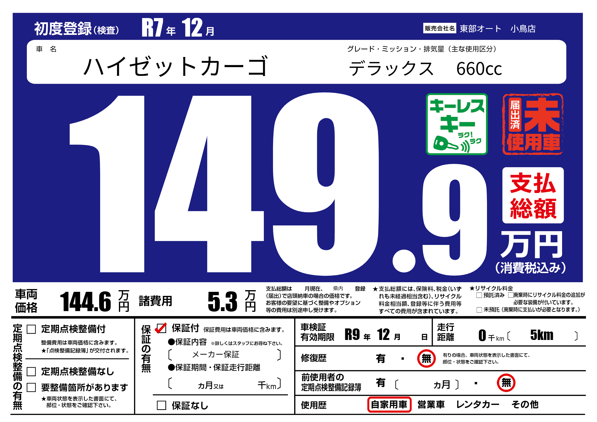 保証付き 保証内容( メーカー保証) ---ヶ月または()千kmまで |