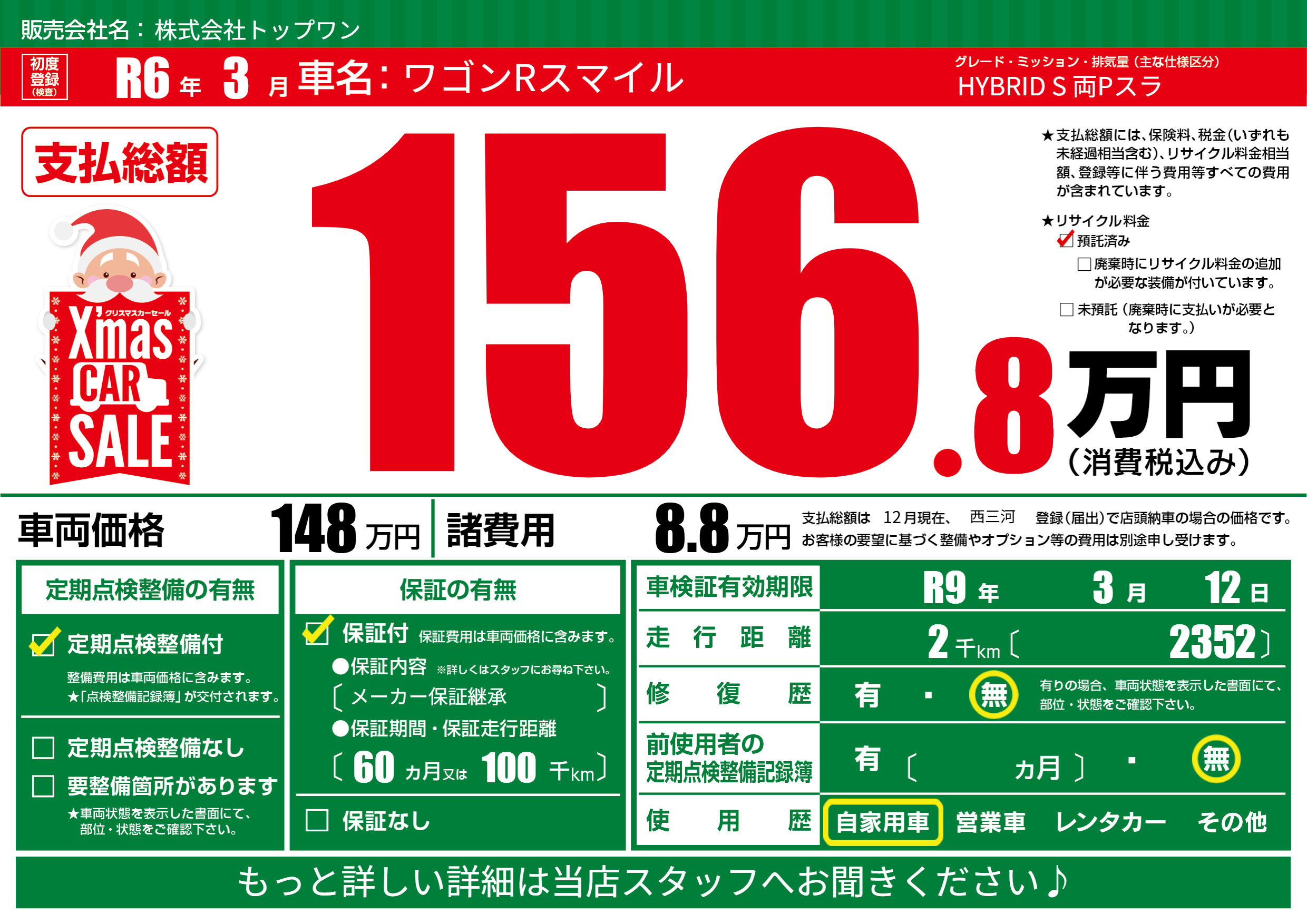 | 走行キロ | 0.2万km | 初年度登録 | R6年3月 |