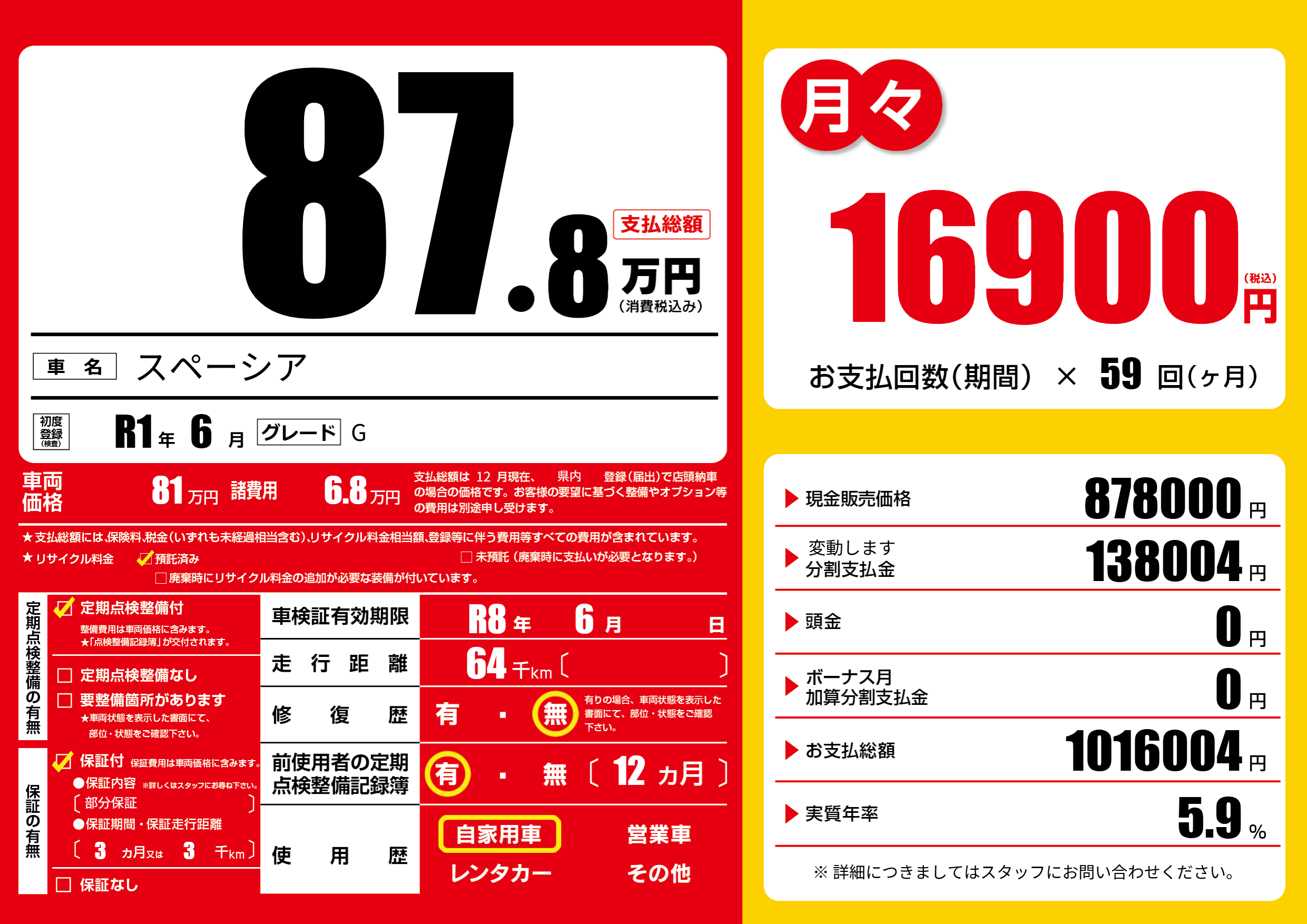 なし | 車検制限 | R8年6月---月 |