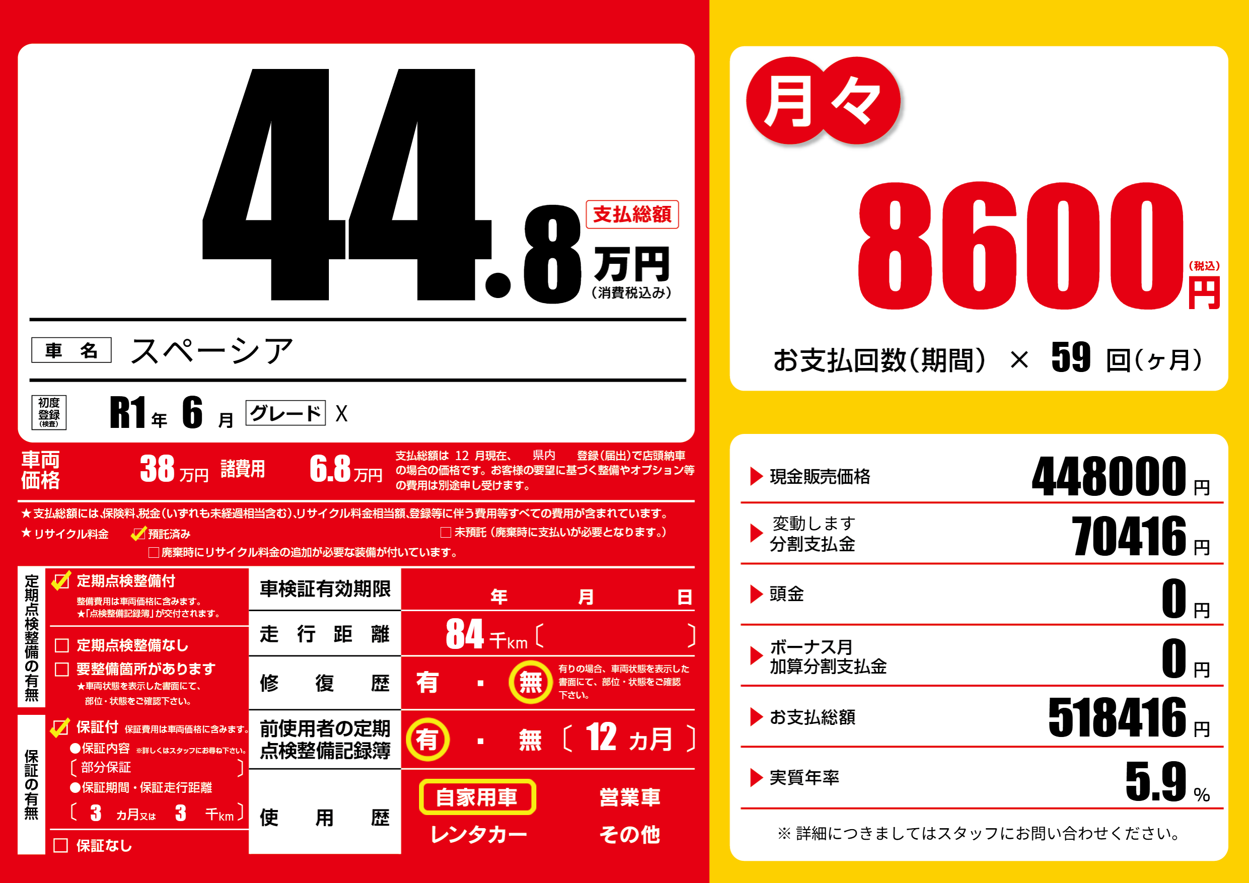 | 走行キロ | 8.4万km | 初年度登録 | R1年6月 |