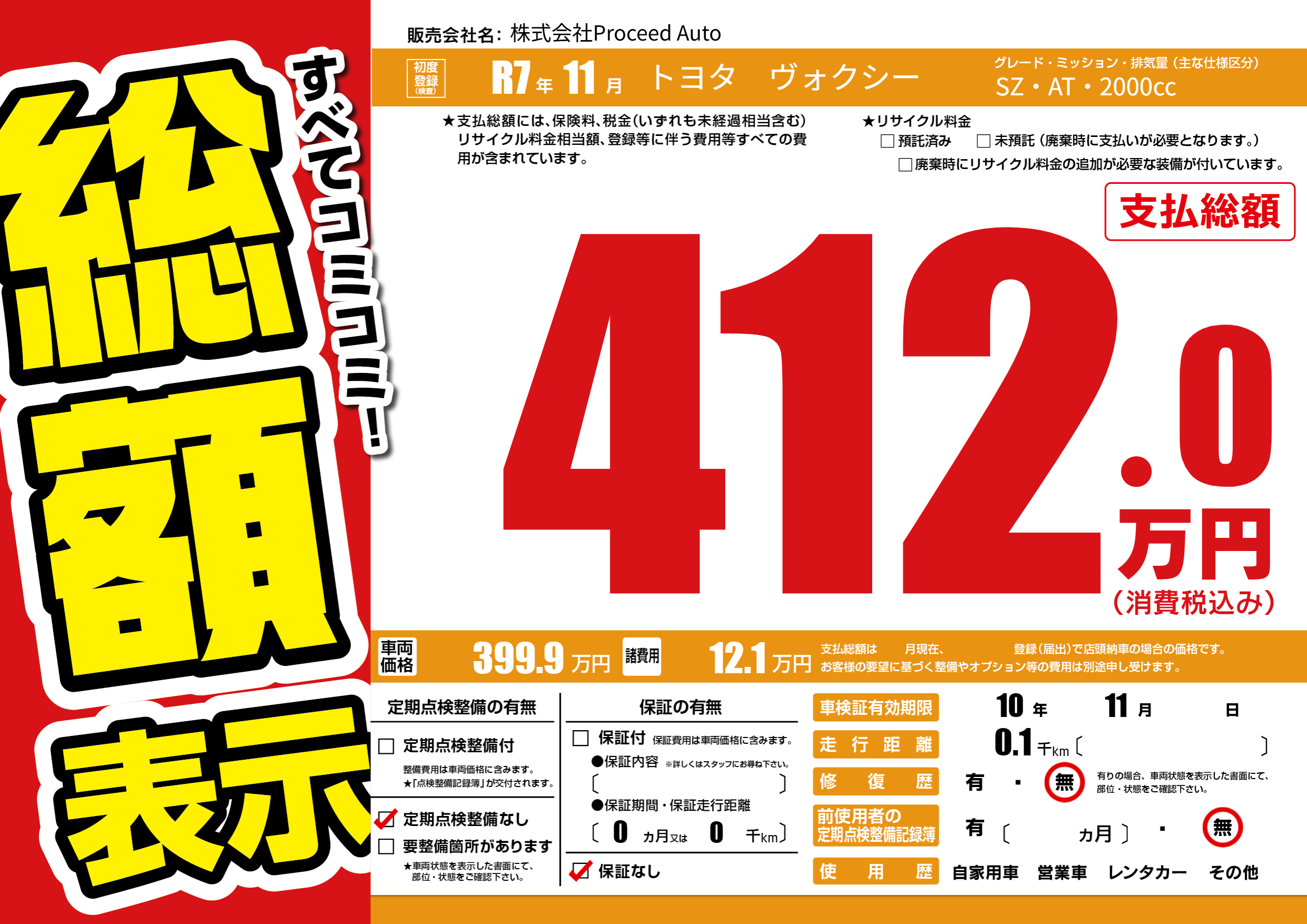 | 走行キロ | - | 初年度登録 | R7年11月 |