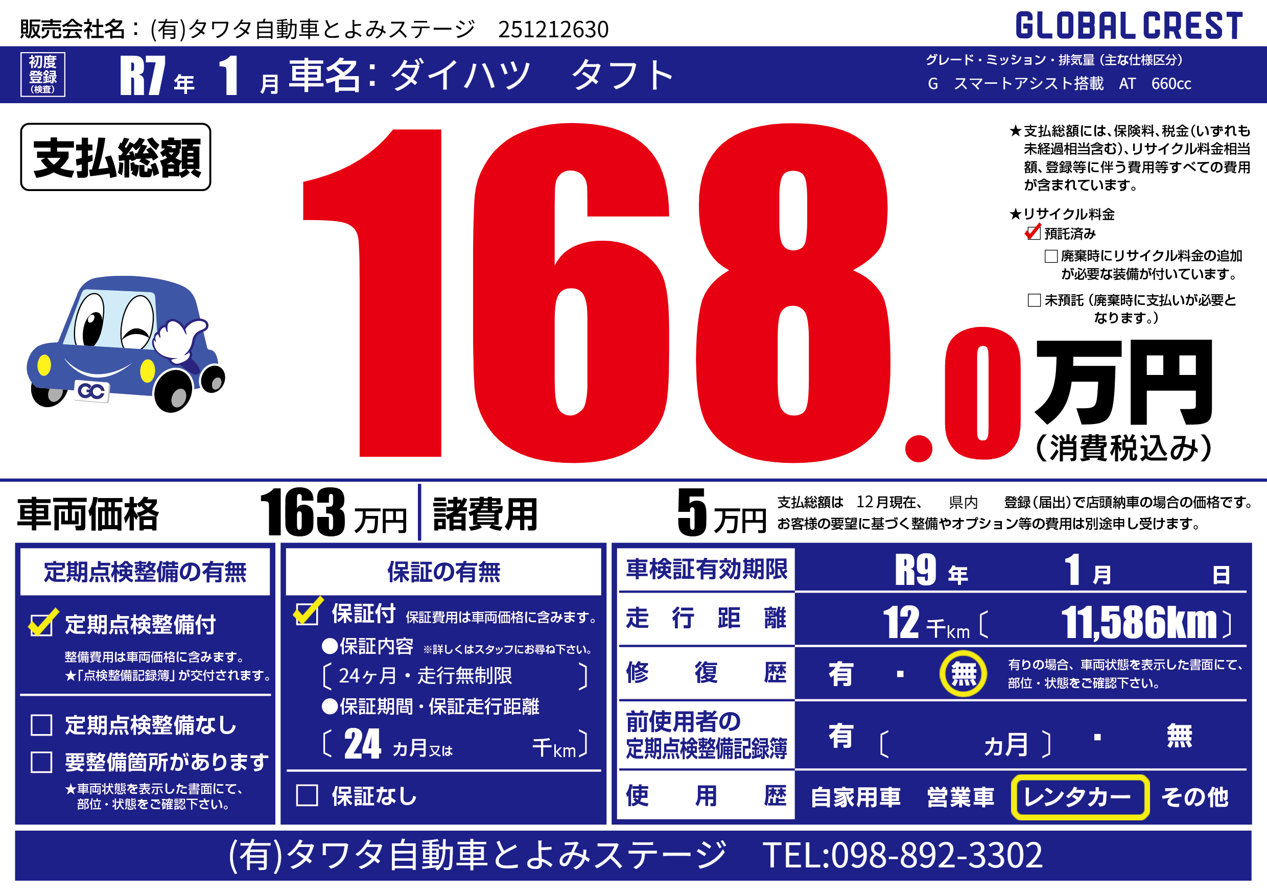 | 走行キロ | 1.2万km | 初年度登録 | R7年1月 |