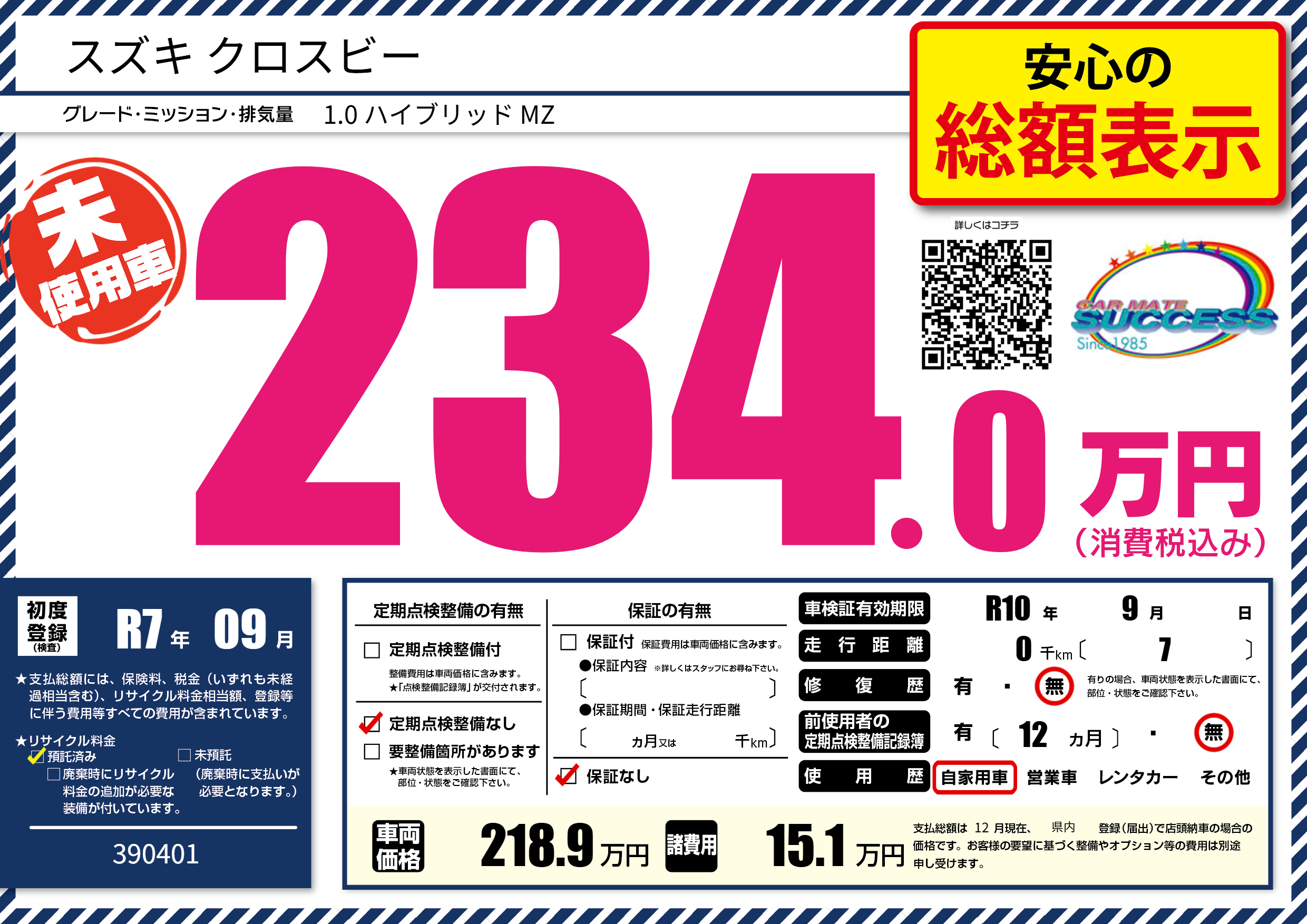 なし | 車検制限 | R10年9月---月 |