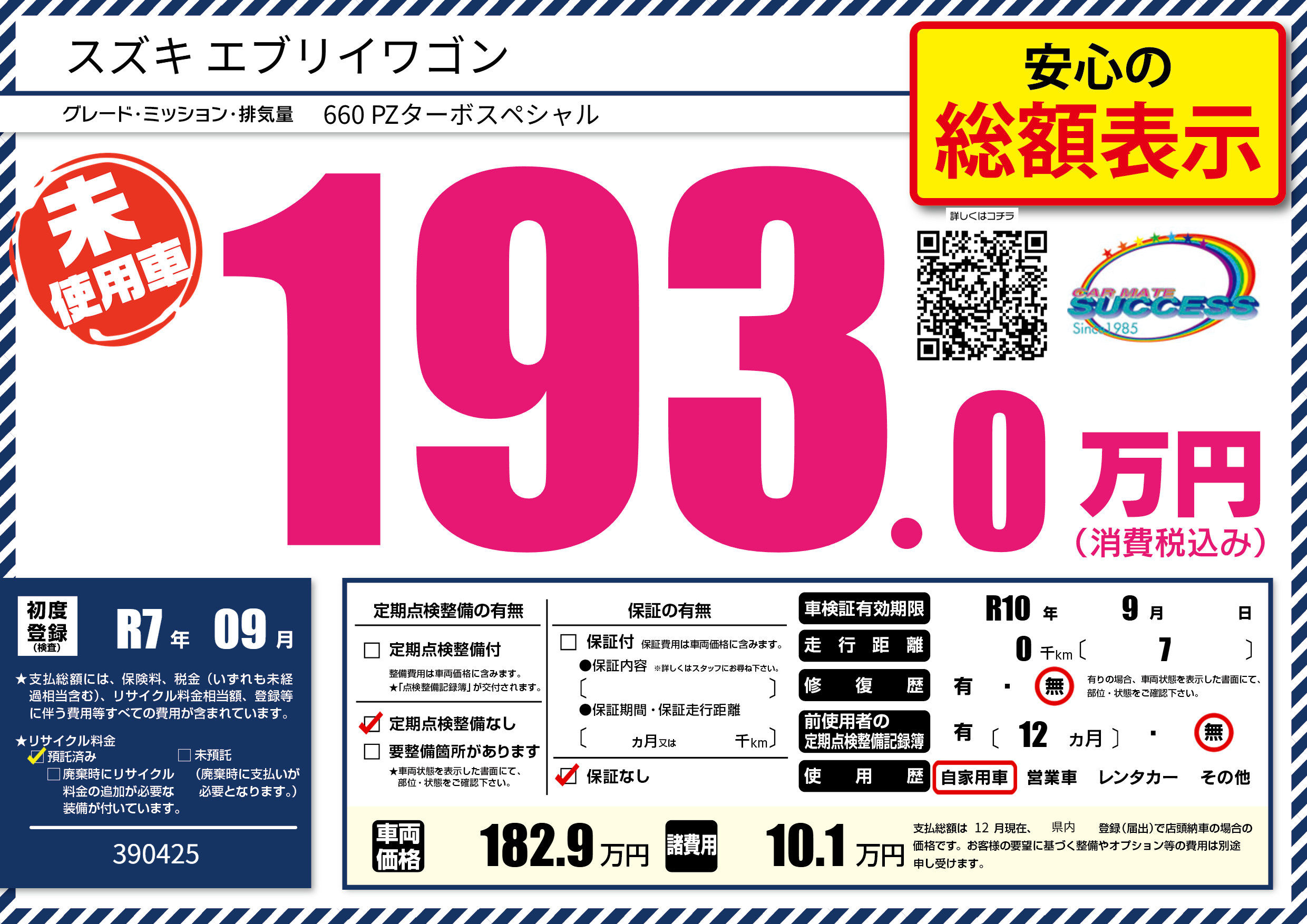 なし | 車検制限 | R10年9月---月 |