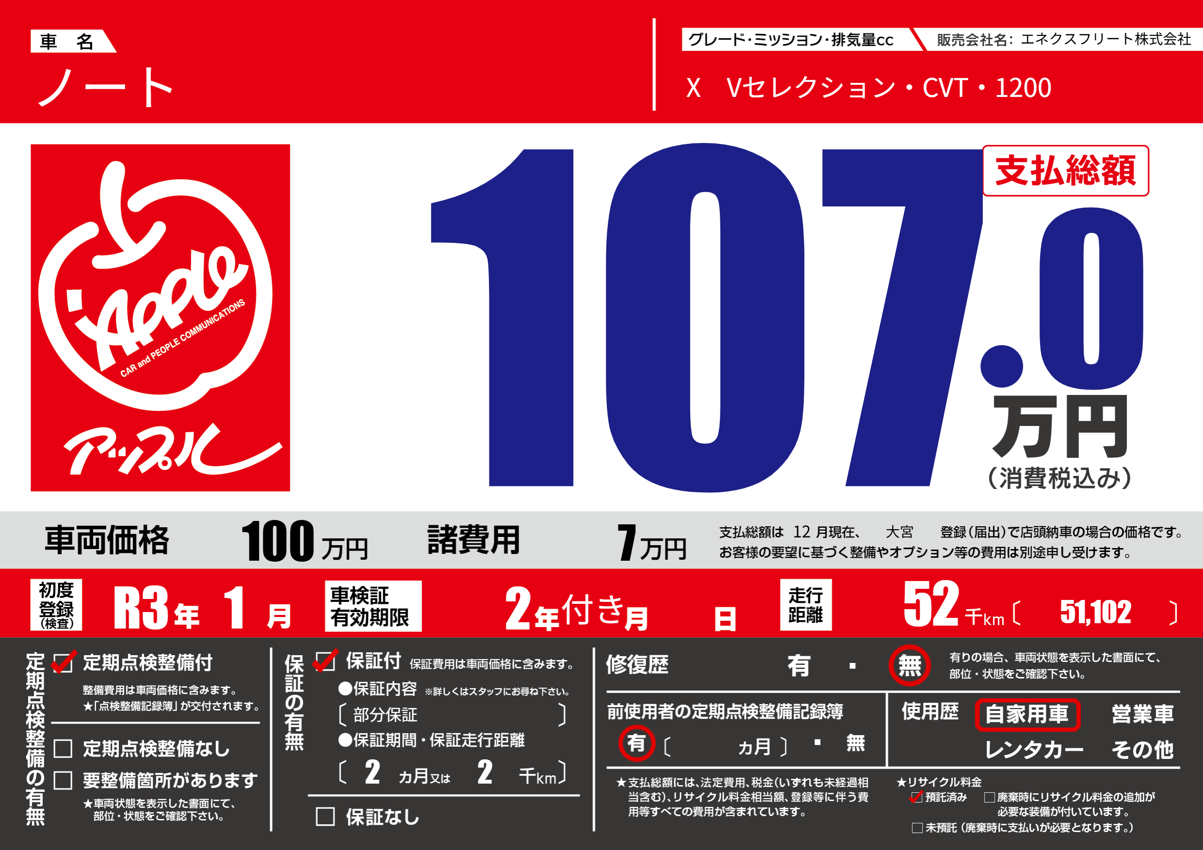 保証付き 保証内容(部分保証) 2ヶ月または(2)千kmまで |